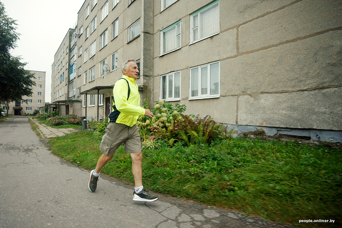 — Ну просто говорили: «Что ты бегаешь? Одурел, что ли? В таком возрасте вредно бегать. В таком возрасте надо сидеть телевизор смотреть!» — вспоминает начинающий физкультурник реакцию общества на свои первые пробежки. — А я им отвечал: «Нет, я не хочу телевизор смотреть. Я хочу бегать». И со временем все привыкли и сейчас спрашивают, сколько километров пробежал, где я бываю.