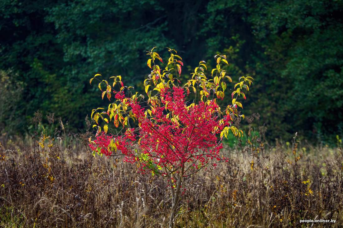 Улетку тут весяліліся бледна-ружовыя купальшчыкі, цяпер іх ужо няма. Слабакі... А мы ўпарта працягваем праект «Поры года» — абралі цудоўнае, даволі дзікае месца і фатаграфуем яго ў розныя сезоны. Глядзіце прагнымі вачыма, запасайцеся прыгажосцю на будучыню.