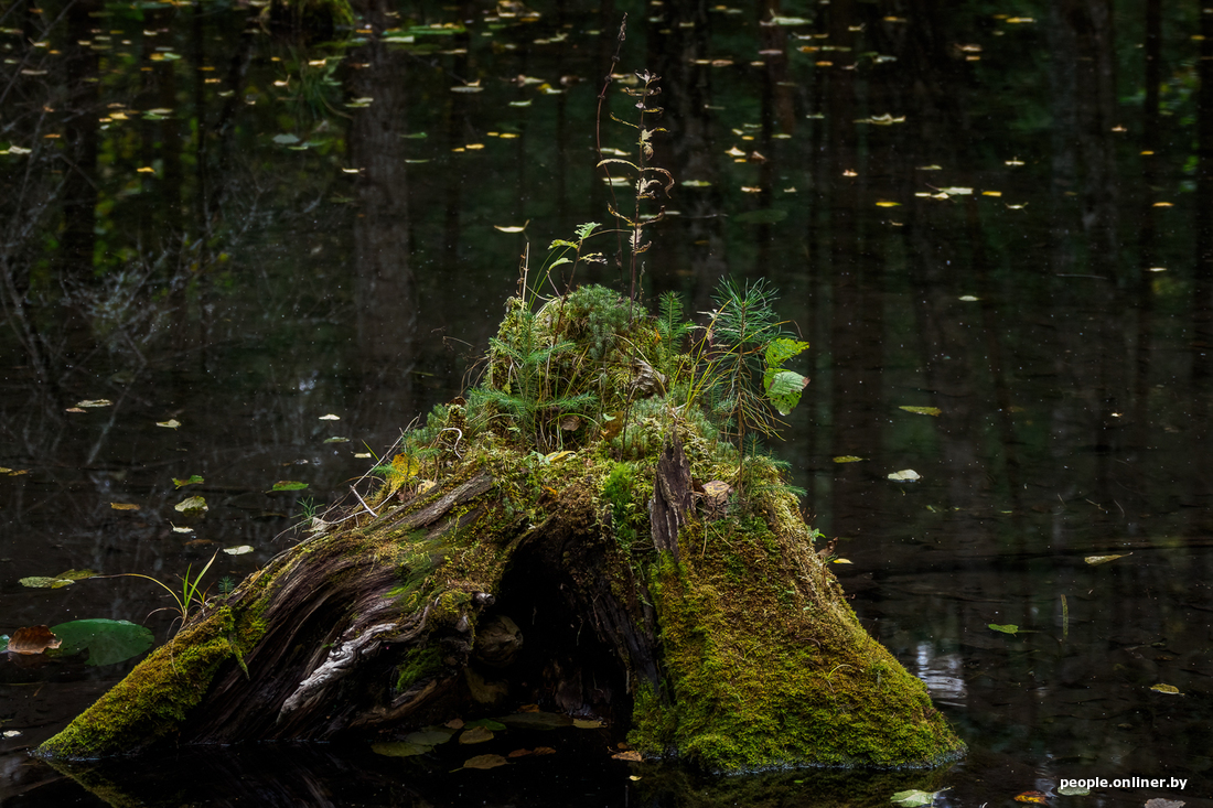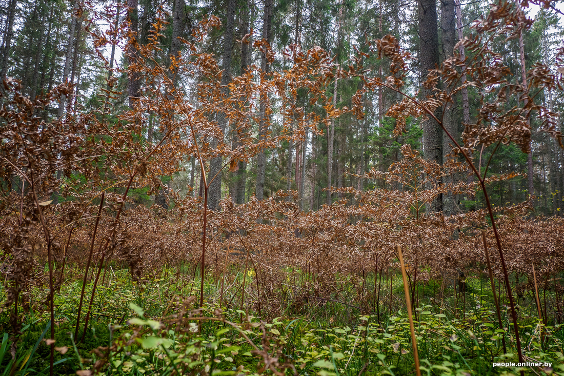 Людзі тут — чужы від, іх прысутнасць дапускаецца як выключэнне. Дзядзечка ад Нацпарку на ўваходзе гандлюе білецікамі па два рублі — а гэта сур'ёзны фільтр для неадэкватных. Таму тут так спакойна і мірна.