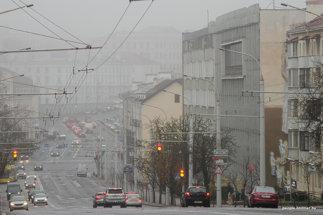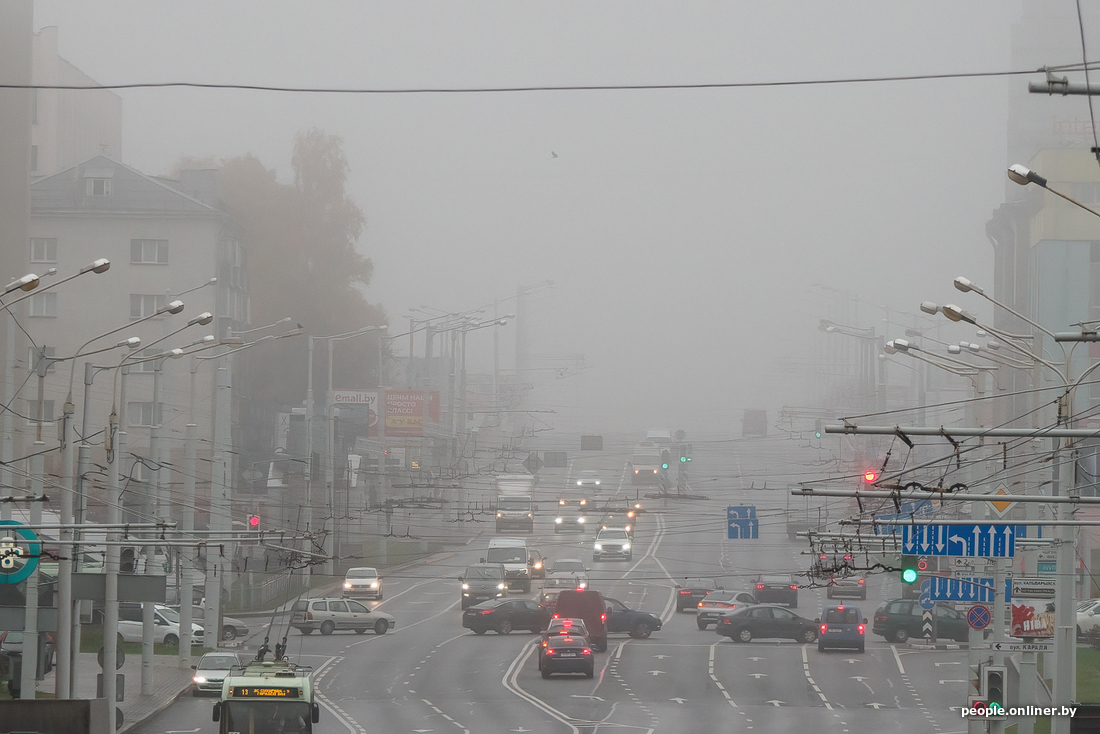 Ожидалось, что сегодня мы увидим нечто необычное: Луна намеревалась закрыть Солнце примерно на 70%. По сути, так оно и было: в Минске сегодня темнее обычного, но с конкретной картинкой были проблемы. Поглазеть на затмение без использования специальной техники нельзя — опасно. И чтобы люди не прятали свои красивые лица за сварочными масками, страна еще с ночи погрузилась в туман — на него смотреть можно как угодно. Он хоть и не так редок, но по-своему хорош. Вашему вниманию — фоторепортаж из мглы и немного Солнца.