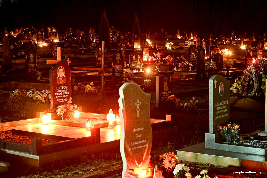На могілках не трэба было ліхтарыкам сабе дапамагаць — ад зарава тых свечак можна было прозвішчы на помніках прачытаць.