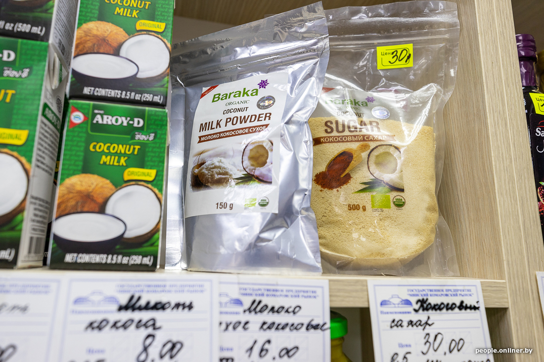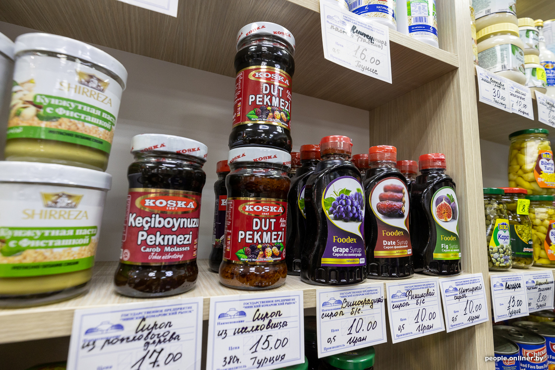 Тут же можно приобрести розовую и мятную воду, которые добавляются в кондитерские изделия или коктейли. Несколько необычных сиропов, хумус, томатные пасты, бобовые в банках, кокосовое молоко, масло и сахар.
