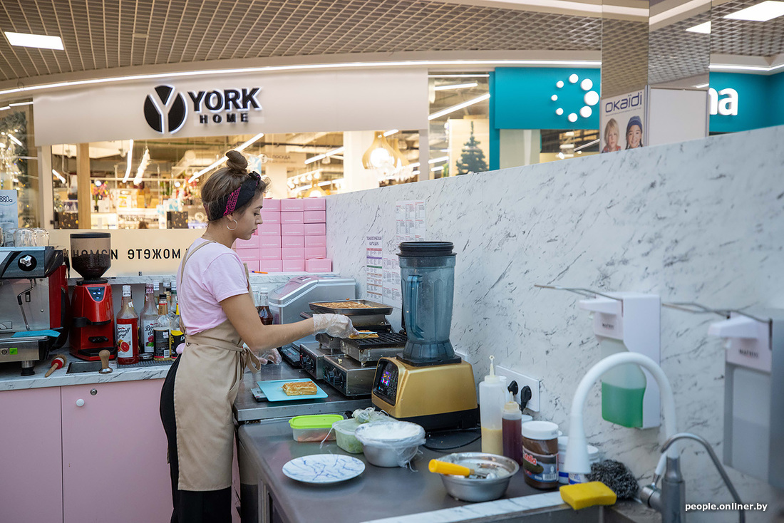 Владелец заведения вдохновлялся сразу несколькими известными сетями вкусняшек, в том числе Starbucks и Cinnabon, а поэтому позаимствовал у них хитрости и постарался захватить всевозможные органы чувств прохожих. Точка вышла красивой, есть вафли и сладкие, и несладкие, и полезные, а съесть их можно на мягких стульях.
