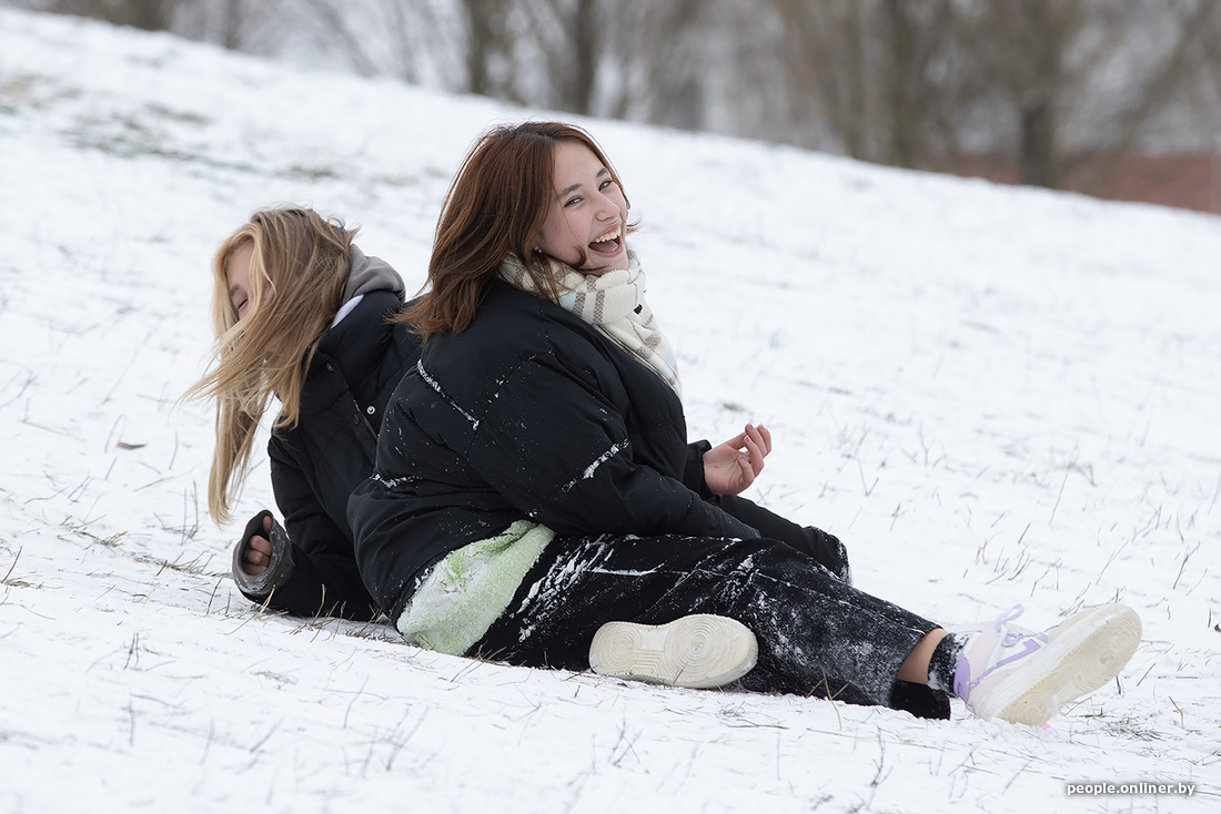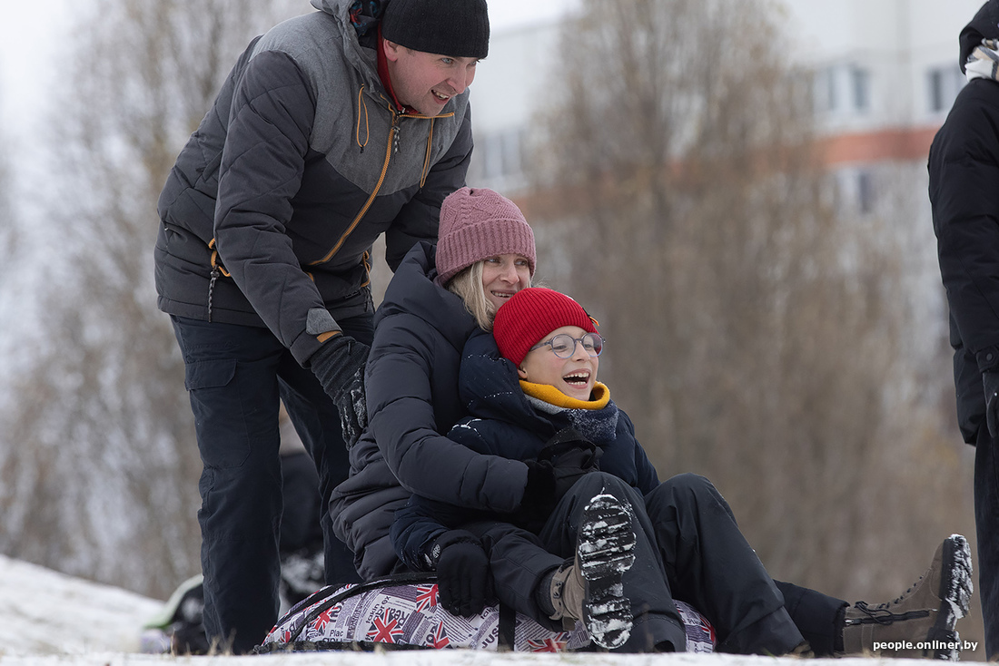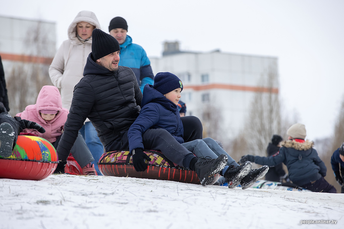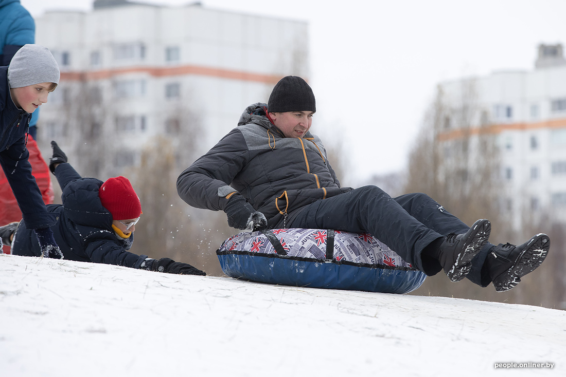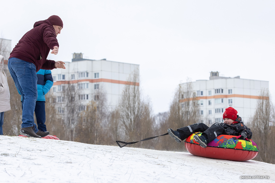 Минские холмы быстро побелели, превратившись в трассы для полетов на санках, тюбингах и прочих зимних приспособлениях.