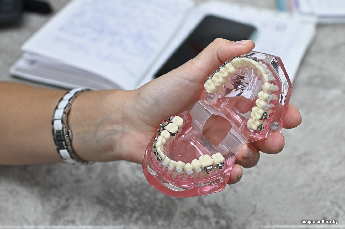 — Верно. После установки нужно регулярно проводить коррекции: менять дуги, двигаясь от более тонких к более толстым, жестким. Кроме того, иногда врач может ставить кнопки, надкусочные пломбы, резиновые цепочки… Рутинной работы здесь много, не будем перечислять все зубодробительные термины, чтобы не утомлять читателя (улыбается. — Прим. Onlíner).