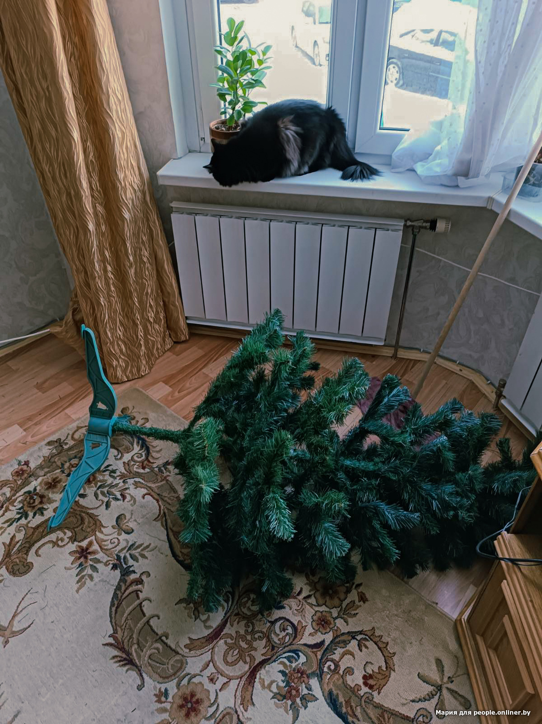 Коварство двуногих не знает границ. Татьяна хвалится: "Решив спасти елку, закрепили ее на потолке. Кот Василий, долго уныло смотрел на дерево. Понимая, что шансов нет, ушел думать под лампу... Мы боимся, он догадается, что не мы у него живем, а он у нас".