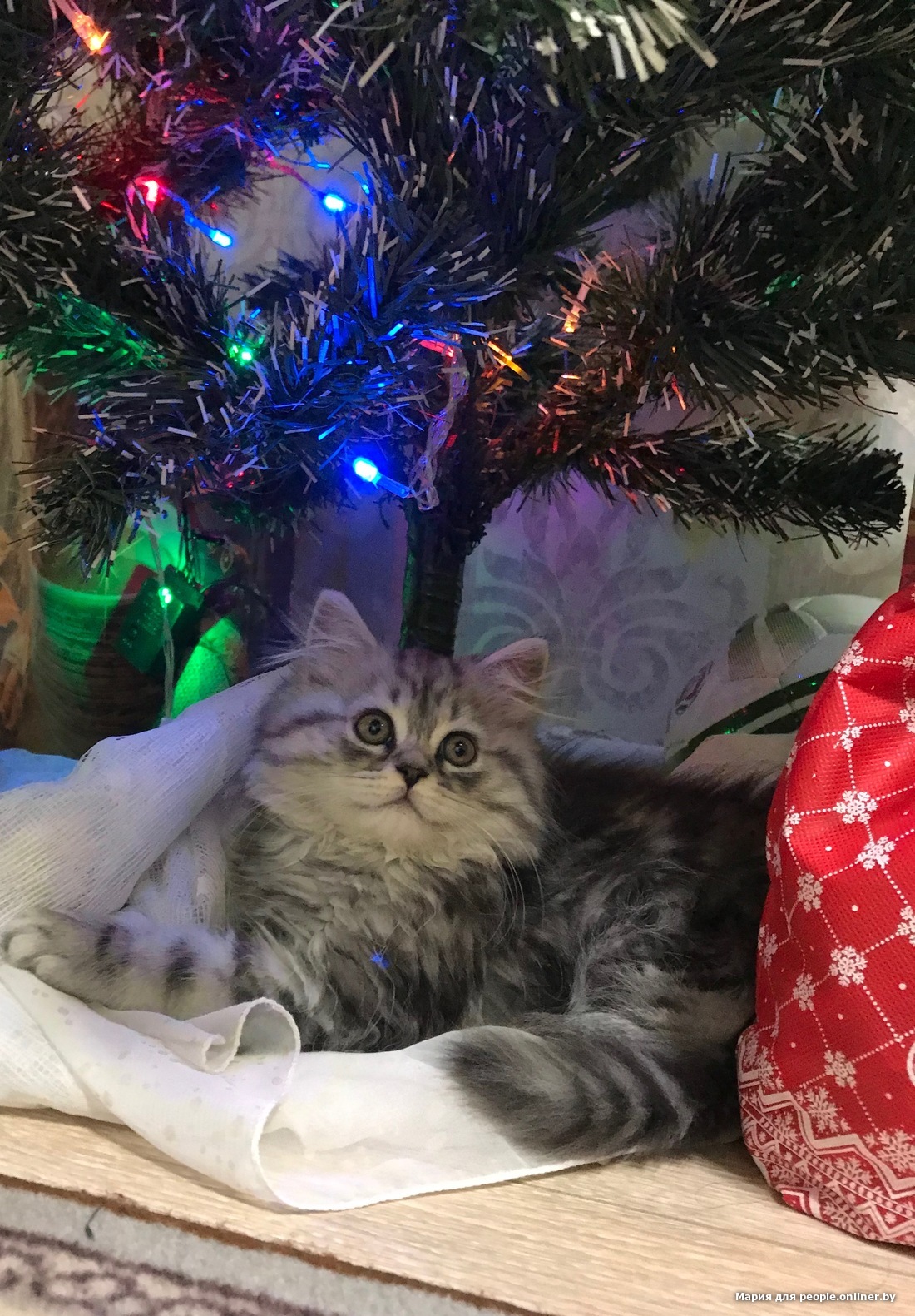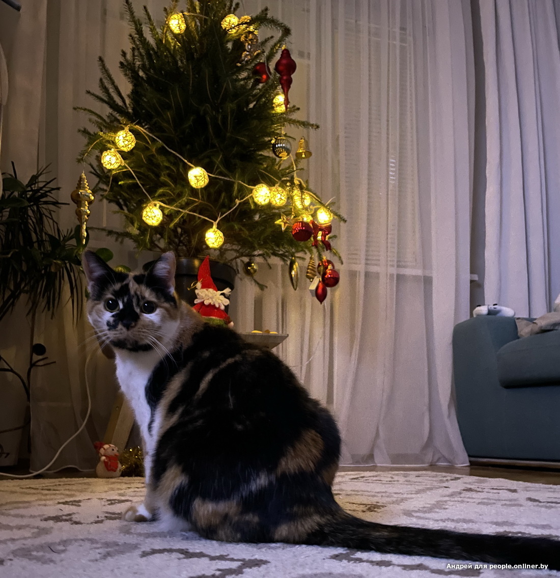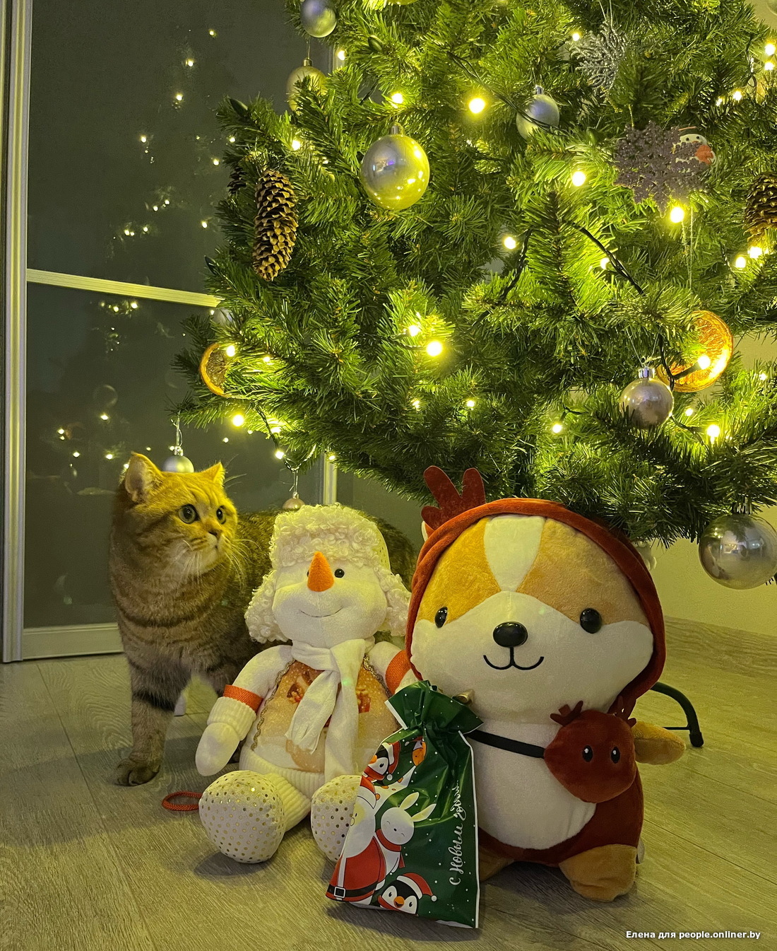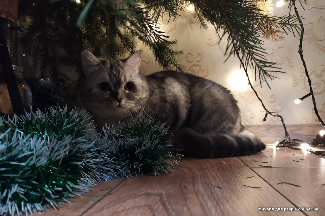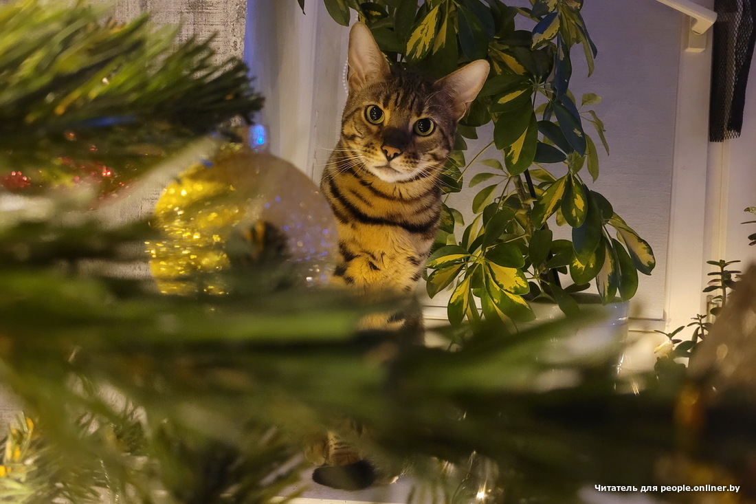 Кот созерцательной породы достался Ольге: "Елисей, как зачарованный, может часами сидеть под елкой и смотреть на огоньки. Ни шарики, ни гирлянду, ни саму елку не трогает. Только созерцает".