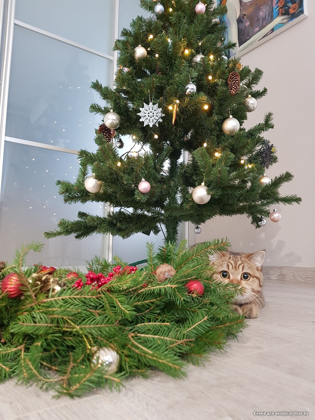Жизнь кота и елки в семье у Елены выглядит так.