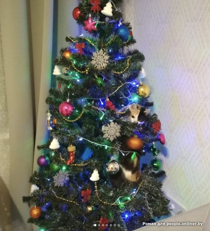 Кот Вискарь — из непримиримых. Вот что пишет его владелец Роман: «Елка две недели стояла без шариков, с одной гирляндой. Успел перегрызть провод. Но шарики оказались круче — они призывают и манят. Даже свист тапка над головой не считается достаточным поводом прекратить безобразие».