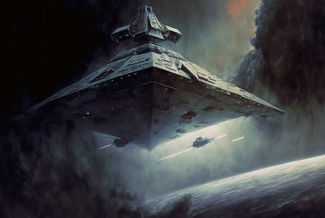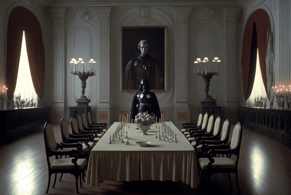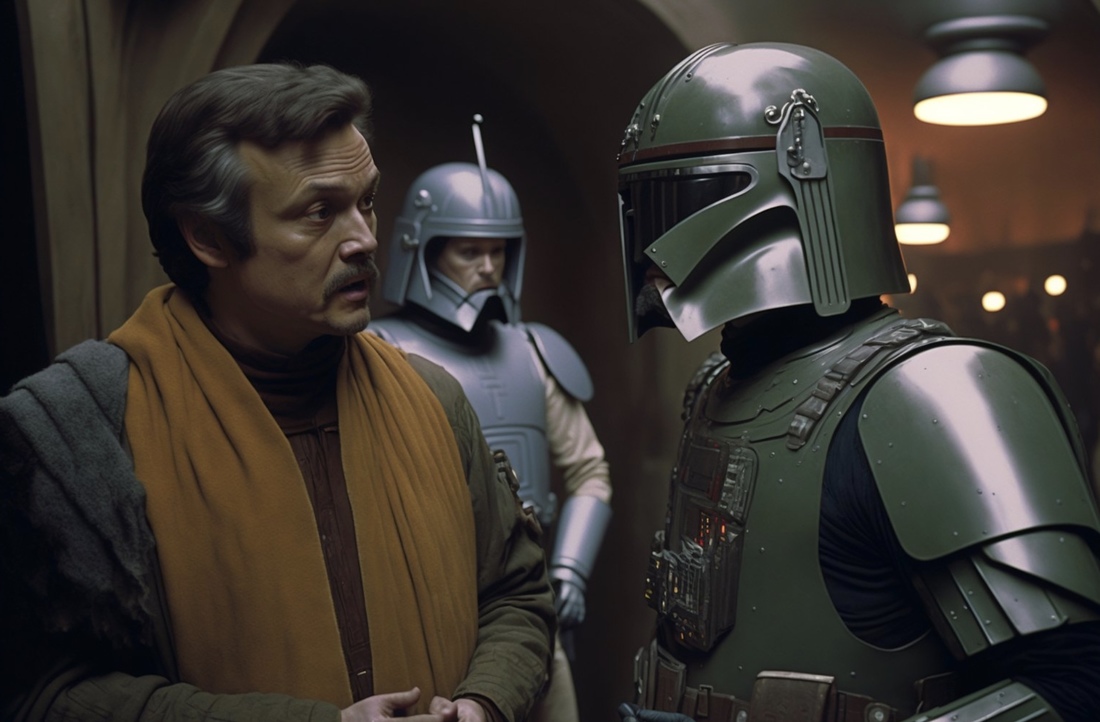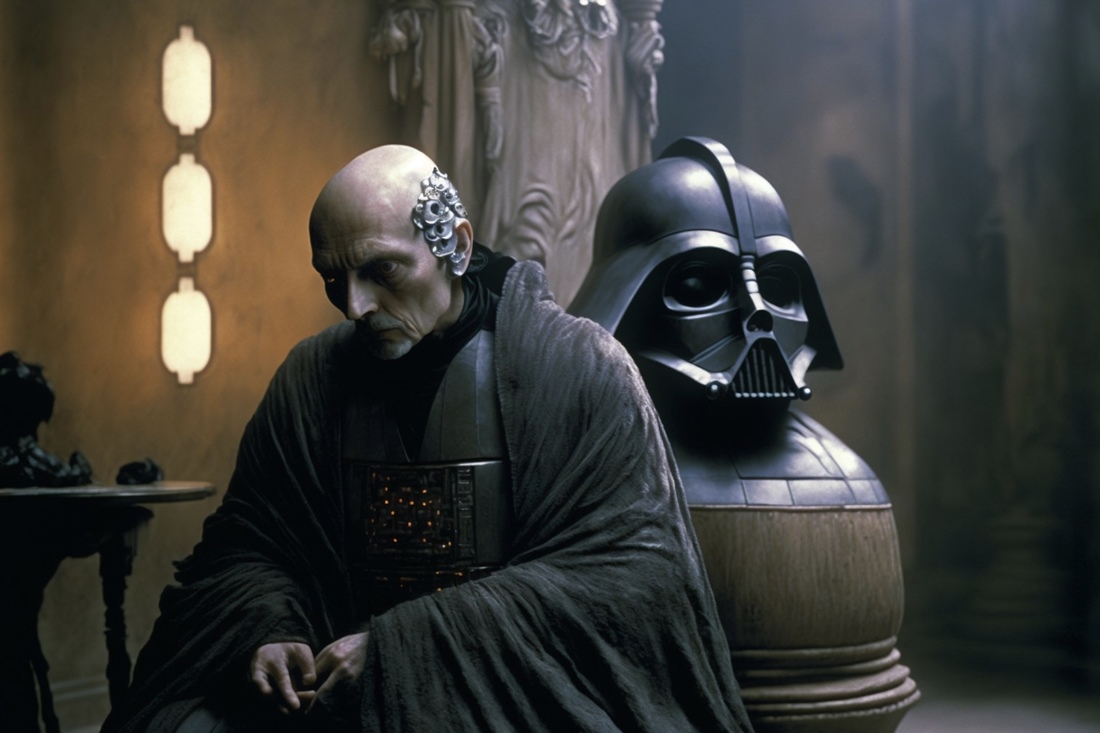 Кажется, в такой стилистике и должен раскрываться вопрос отцов и детей. Нейросеть передала узнаваемый стиль Тарковского — приглушенные цвета и порой статичные планы, что, конечно, не свойственно боевику. Космические корабли, другие планеты, джедаи и ситхи вдруг оказались окутаны мрачной эстетикой советского режиссера.