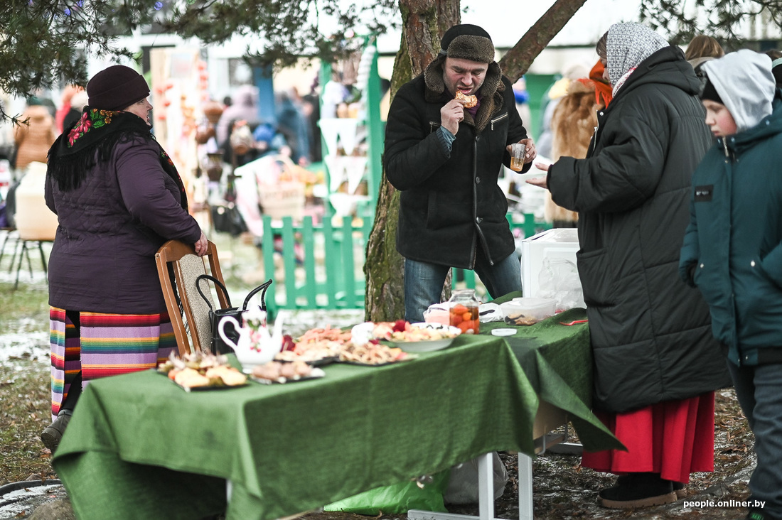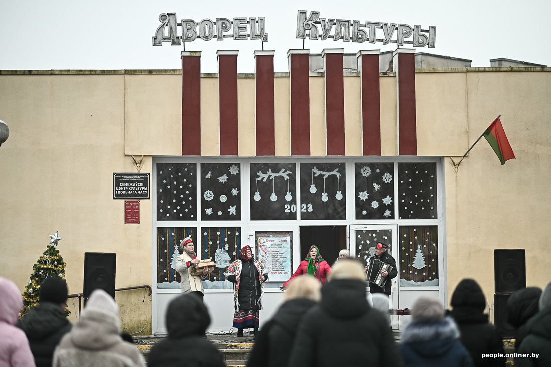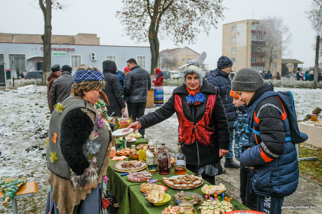 Пакуль «цары» рыхтуюцца да выхаду, каля Палаца культуры пачынаецца свята — з шашлыком, піражкамі, гарбатай і другімі напоямі. Каб сагрэцца, людзі актыўна танцуюць, а каля сцэны можна заўважыць даволі каларытных персанажаў.
