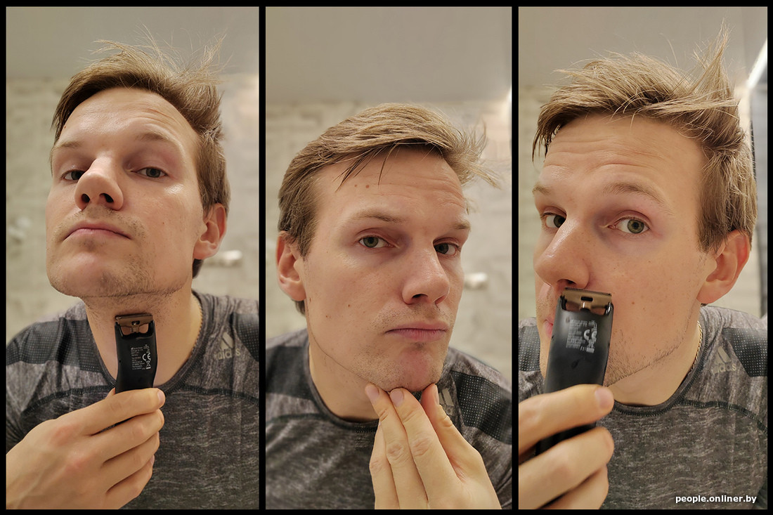 При всех преимуществах, именно триммер относится к тем гаджетам, для исппользования которых придется набраться определенного опыта. Для создания того же четкого контура триммер нужно держать лезвием к себе и двигаться очень короткими штришками. А еще изучить вопрос, как именно стричь, чтобы самого себя не «оболванить». Например, «линия шеи» должна проходить примерно на два пальца выше кадыка. Только все, что ниже можно без жалости убирать.