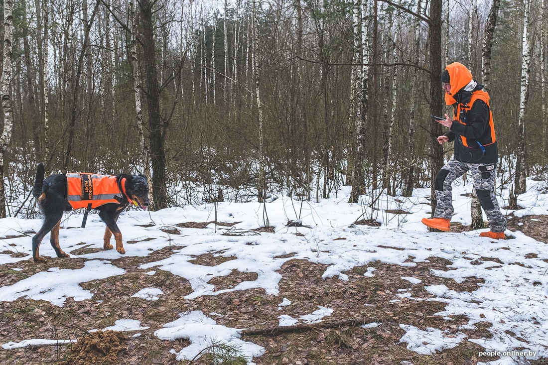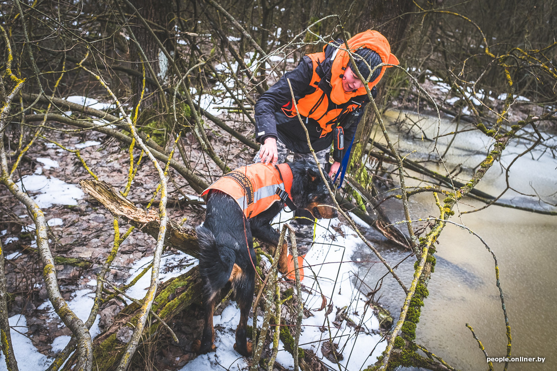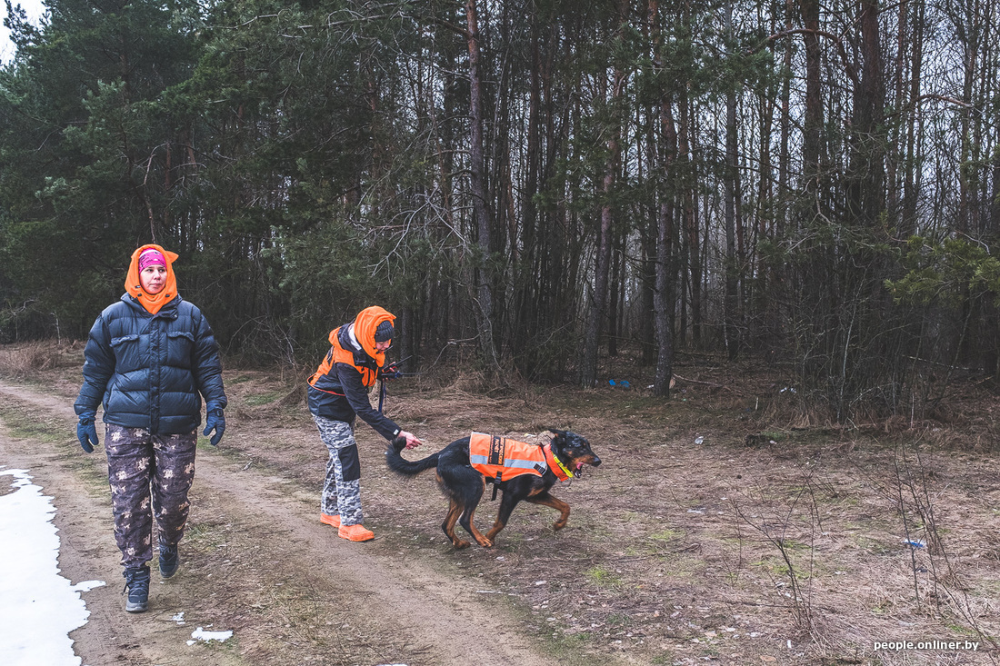 — Знойдзеных не было не таму, што сабакі дрэнна шукалі, а таму, што на выдзеленым участку проста не было чалавека. Бо задача сабакі — зачысціць квадрат і сказаць: тут нікога няма. Гэта значыць, што звычайная пошукавая група можа патраціць сілы і час на апрацоўку іншага ўчастка. Іншымі словамі, кіналагічны разлік, а гэта два чалавекі і сабака, замяняе восем пошукавікаў без сабакі.