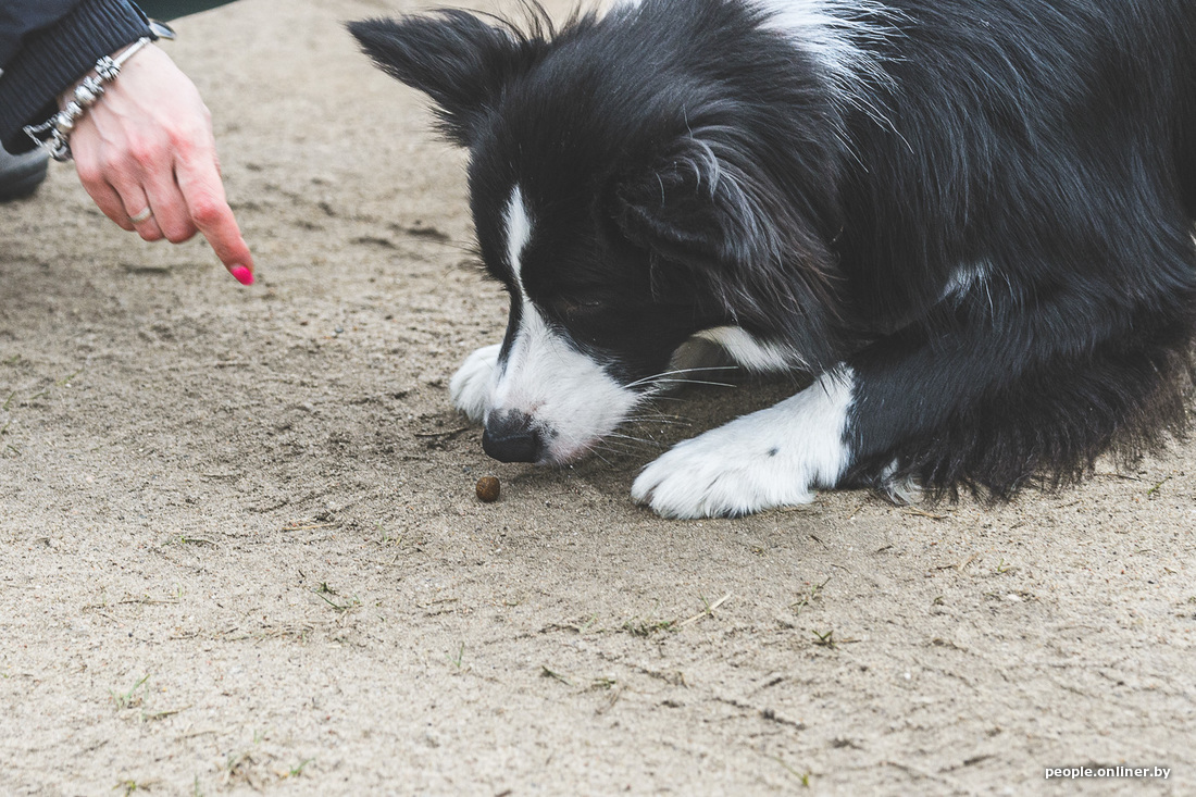 Вольга і бордэр-коллі Нэвіл дэманструюць «паслухоўку»: сабака выконвае каманды, ходзіць колам і паказвае картачныя фокусы... Нам не зусім зразумела, як выкарыстаць такія ўмельствы ў пошуку, але, запэўніваюць, насамрэч гэты «цырк» важны: вучыць сабаку дысцыпліне і канцэнтрацыі. Потым ужо можна трэніраваць іншыя навыкі. За «паслухоўку» адказвае Вольга Крупская.