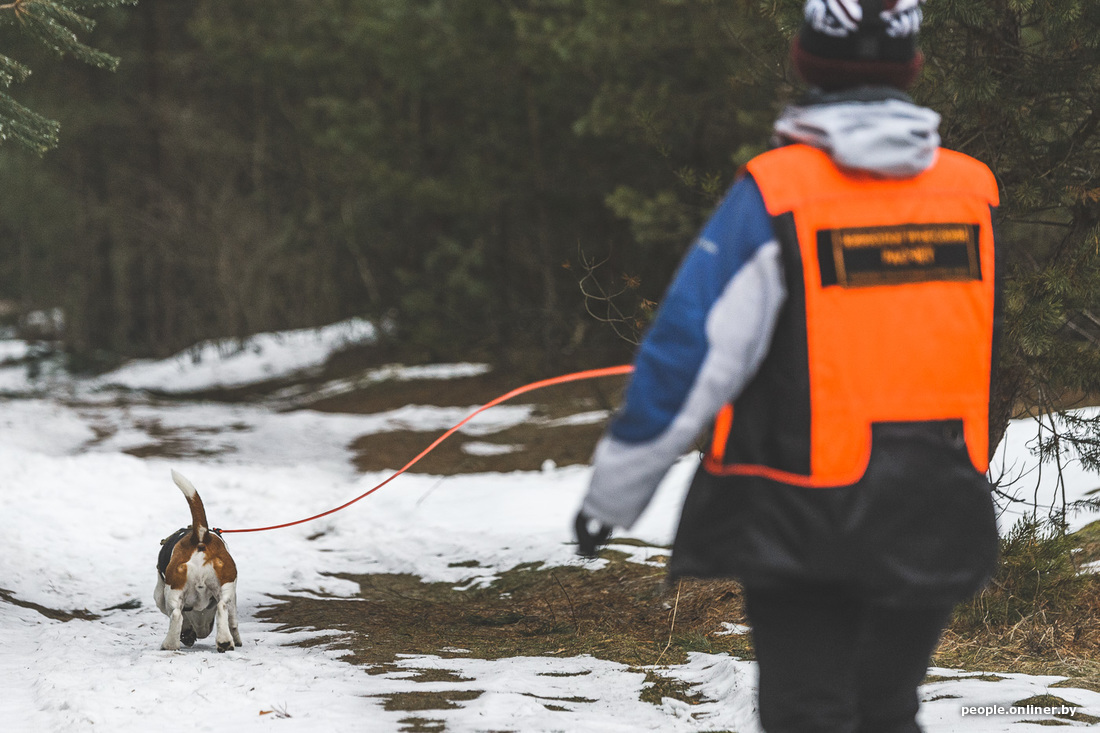 Следавы сабака — гэта іншае. Ён патрэбен, калі маюцца ўзор паху («занюшка») і месца старту. Шкарпэтка, шапка, папяровы кубачак, запальнічка, пянёк, на якім пасядзеў чалавек, або адбітак мяккага месца ў снезе — усё пойдзе ў ход. Гаспадыня бігля Наталля Міронава кажа, што пах застаецца на любым прадмеце, адрозніваецца толькі час, на працягу якога ён трымаецца.