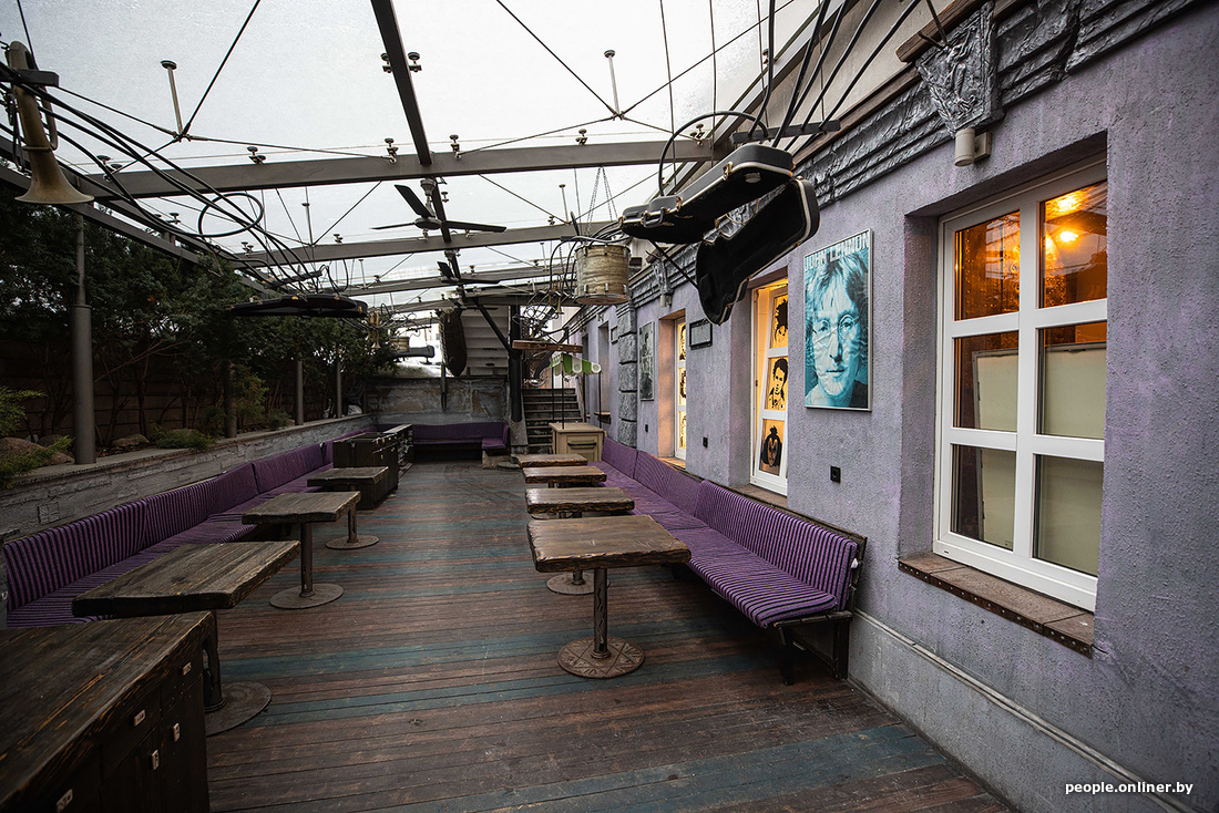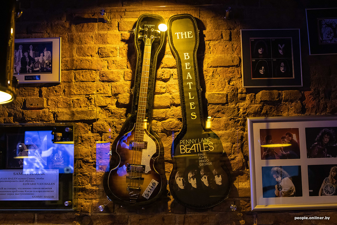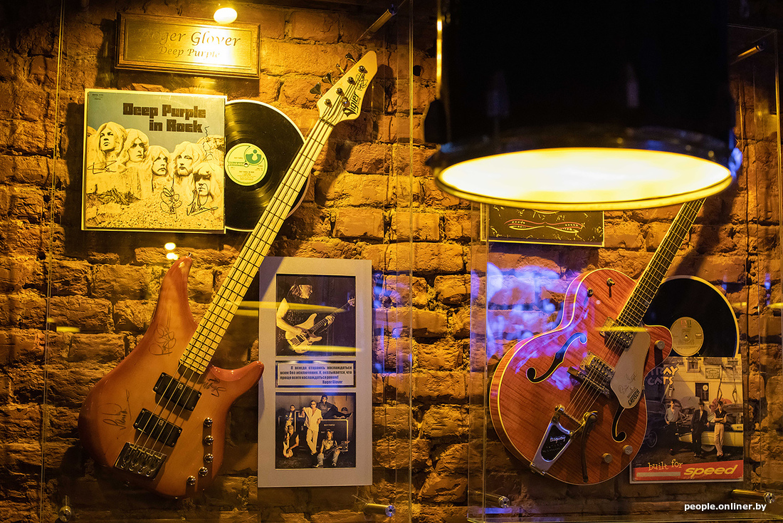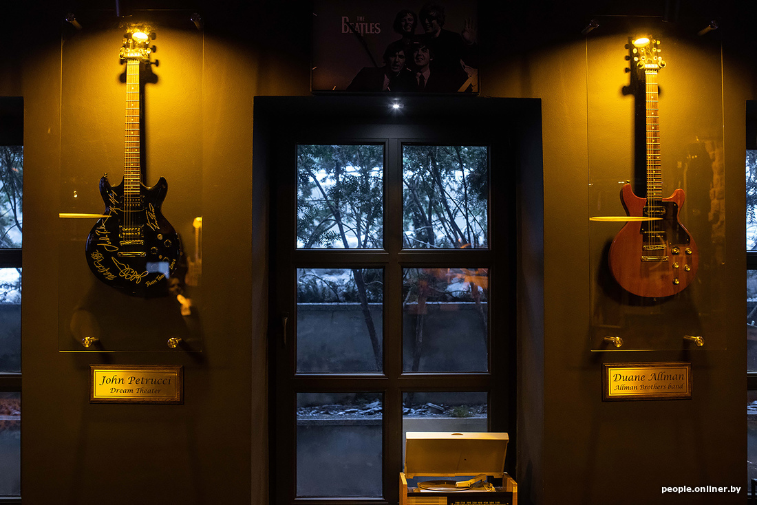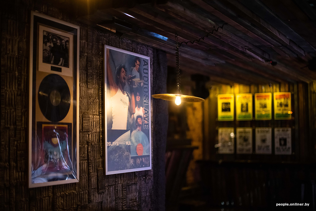 Геометрия этого пространства не изменилась. Каждый элемент, который был дорог этому проекту, остался на своих местах. Декор остался прежним: картины с автографами, гитары, памятные шильдочки, вывески, коллекции, собранные Валерием Шумским (бывший владелец заведения. — Прим. Onlíner).