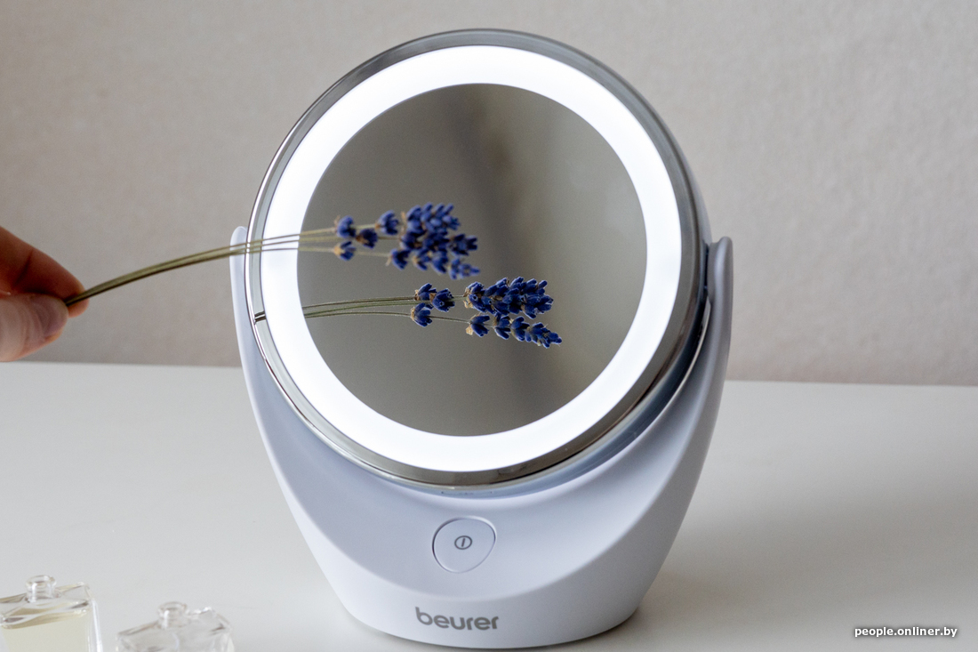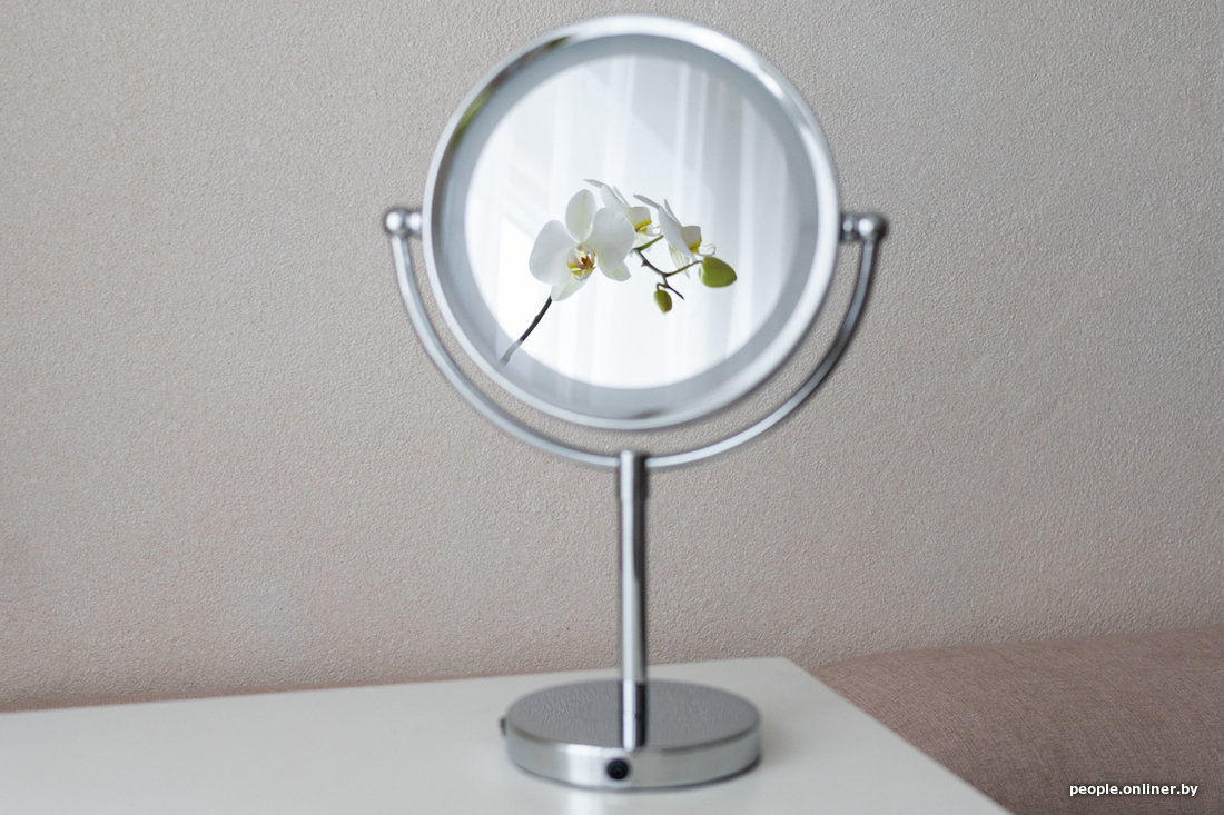 Работает от сети, есть мягкая круговая подсветка и увеличительное зеркало, которое может показать все и даже больше. Советуем не злоупотреблять.