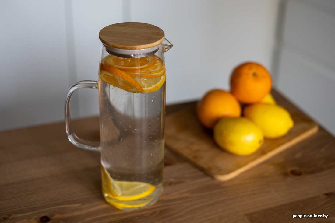 Когда придет жаркое лето (хотя в это пока слабо верится), захочется пить как можно больше освежающих напитков. Не стоит злоупотреблять газировками. Лучше и полезнее готовить самим. Например, вечером нарезать лимон, залить водой и поставить в холодильник. А утром освежающий напиток готов — спасибо себе вчерашнему. Кувшин как нельзя кстати подойдет для таких напитков. Он достаточно узкий, без труда влезет на боковую полку любого холодильника, что, несомненно, очень удобно. А еще у него классная деревянная крышечка.