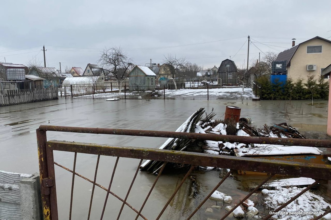 Сначала Березина просочилась из-за дамбы в дачные поселки, покрыла их неглубоким ровным слоем. А потом замерзла. То ли такой у нее был план, то ли импровизировала на ходу. Получилась уникальная ледовая арена: сверху гладкий лед, в него вмерзли садовые домики, деревья, заборы, покрышечные лебеди. А подо льдом обосновались клубника с чесноком. Такого природного явления тут не припомнят.
