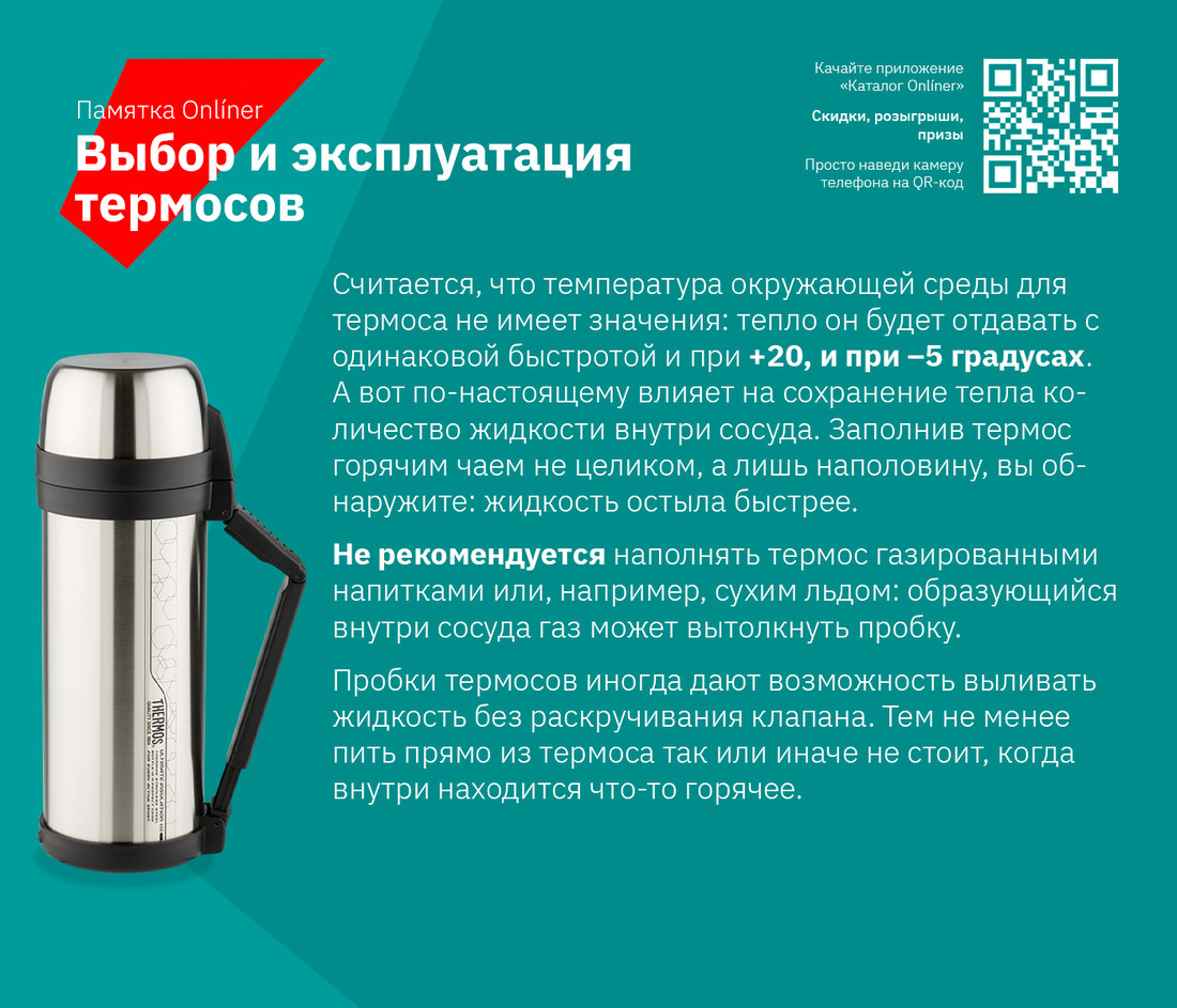 Еще один важный нюанс: качественный термос не должен нагреваться снаружи, если внутрь налить кипяток. Сосуд может быть теплым лишь ближе к верхушке, где находится пробка.