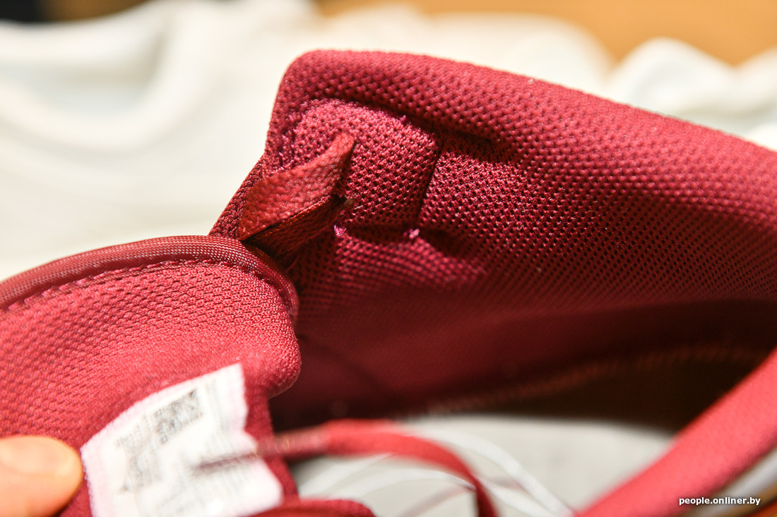 И главное: вся эта информация дублируется внутри на язычке, в том числе QR-код. Иногда эта же информация может быть нанесена на внутреннюю поверхность кроссовки. Ради интереса сверяем: все действительно совпадает. А вот у поддельных кроссовок сверять нечего: язычок девственно чист.