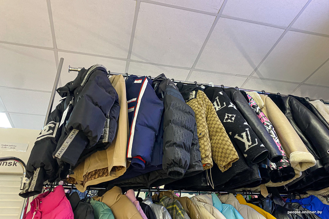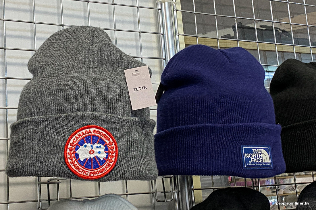 С первого взгляда ясно, что ни один белорусский бутик не может похвастаться даже десятой частью такого разнообразия брендов. Сразу у входа — шапки. Модель, как и цена, абсолютно одинаковая. Утеплиться можно за 45 рублей, в глубине рядов цена растет до 49. Различаются логотипы: от The North Face (оригинал в два раза дороже) до Canada Goose (всего-то $273).