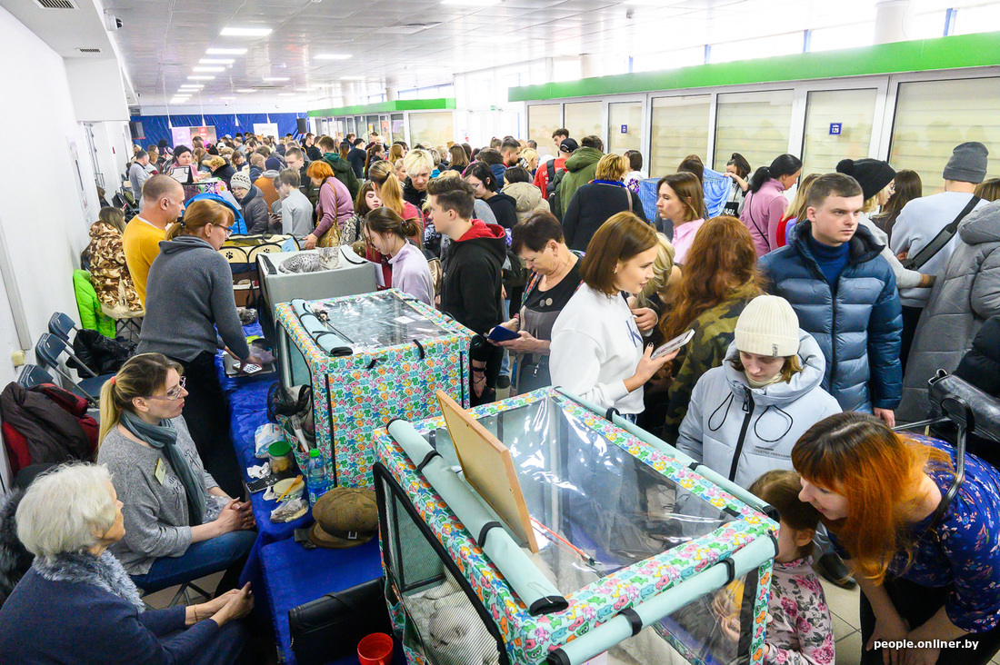 На мероприятие за первый день работы пришло около 800 человек. От такого наплыва людей некоторые хвостатые очевидно волнуются, другие самозабвенно гоняются за игрушками.