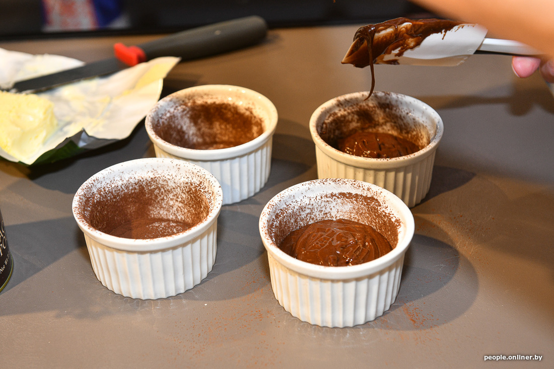 А теперь перейдем к фондану — лакомству, которое, как объясняет Максим, готовят едва ли не в каждой французской кофейне и стараются подавать к столу исключительно горячим. Этот кекс, кстати, с вкусным сюрпризом. Внешне он выглядит цельным, но, как только начинаешь его разрезать, изнутри сразу же начнет сочиться шоколад.