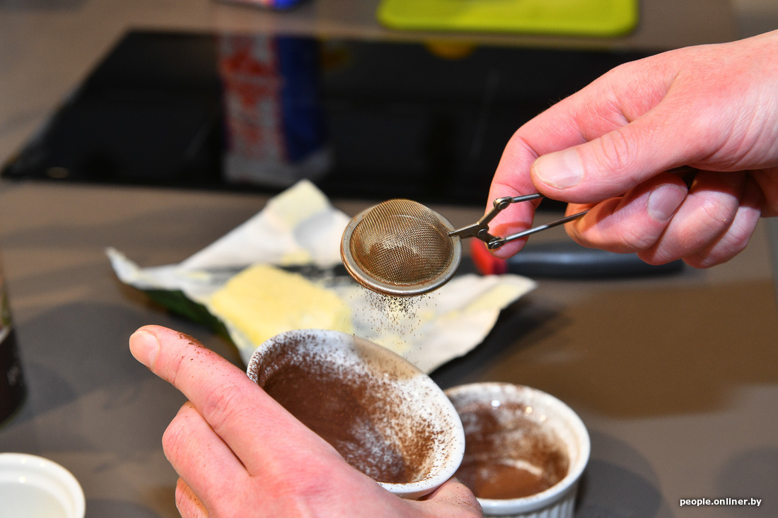 Но самое время заняться готовкой. На этот раз мы предложили нашему герою два десерта: баскский чизкейк и фондан. Они легко готовятся в домашних условиях и спокойно могут дополнить любой праздничный стол. А еще — удивить и порадовать любимого человека.