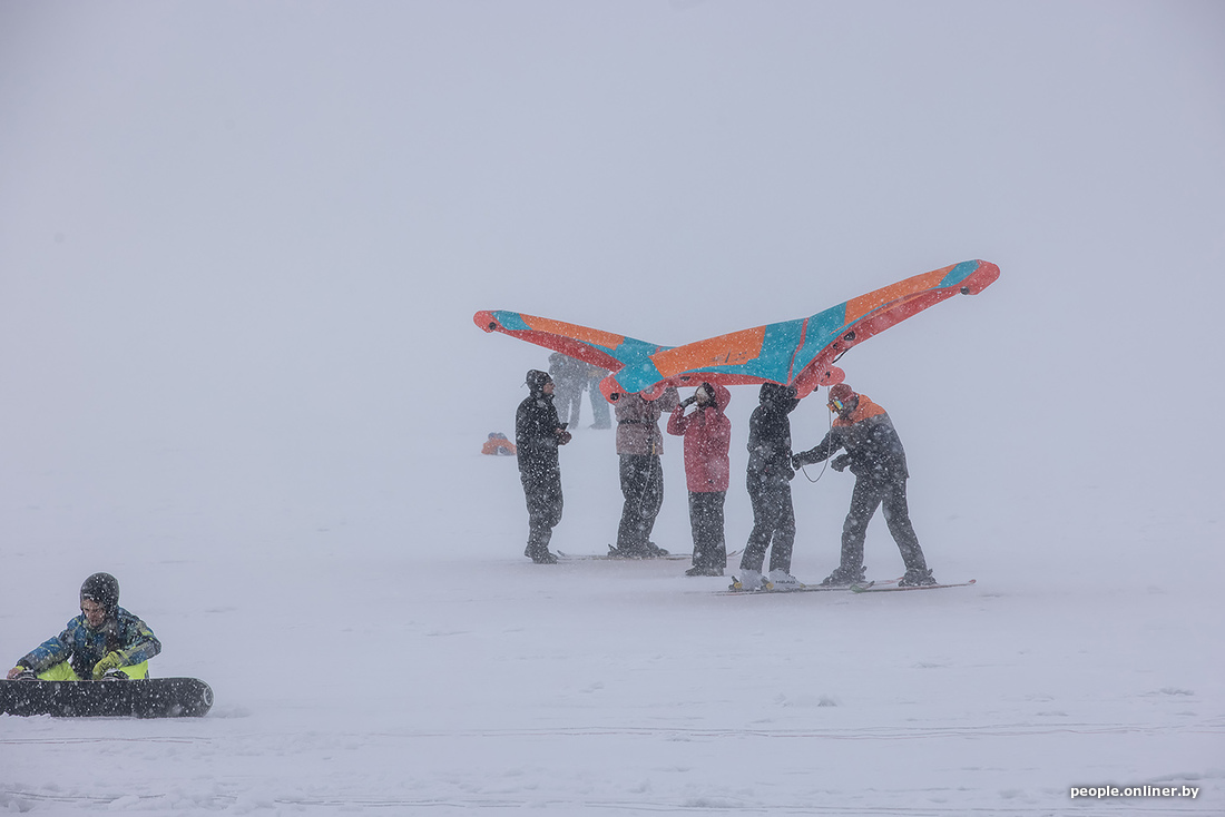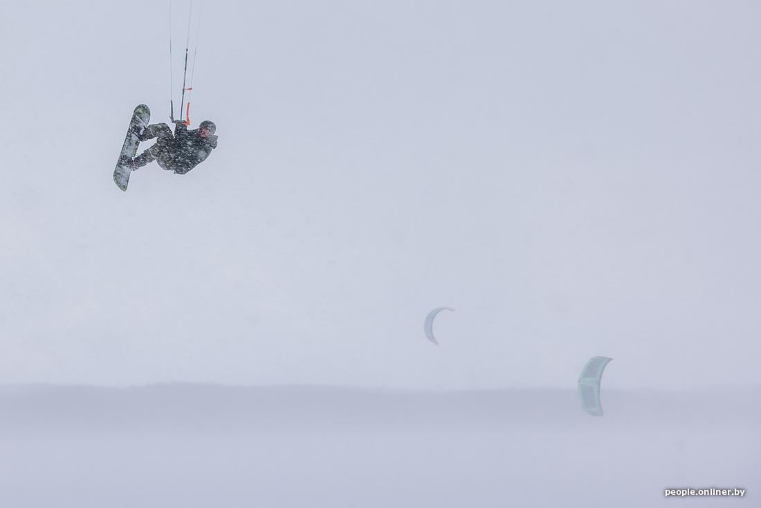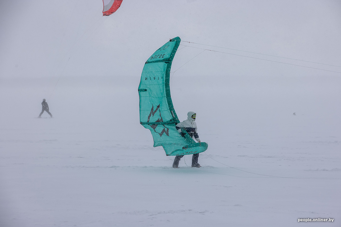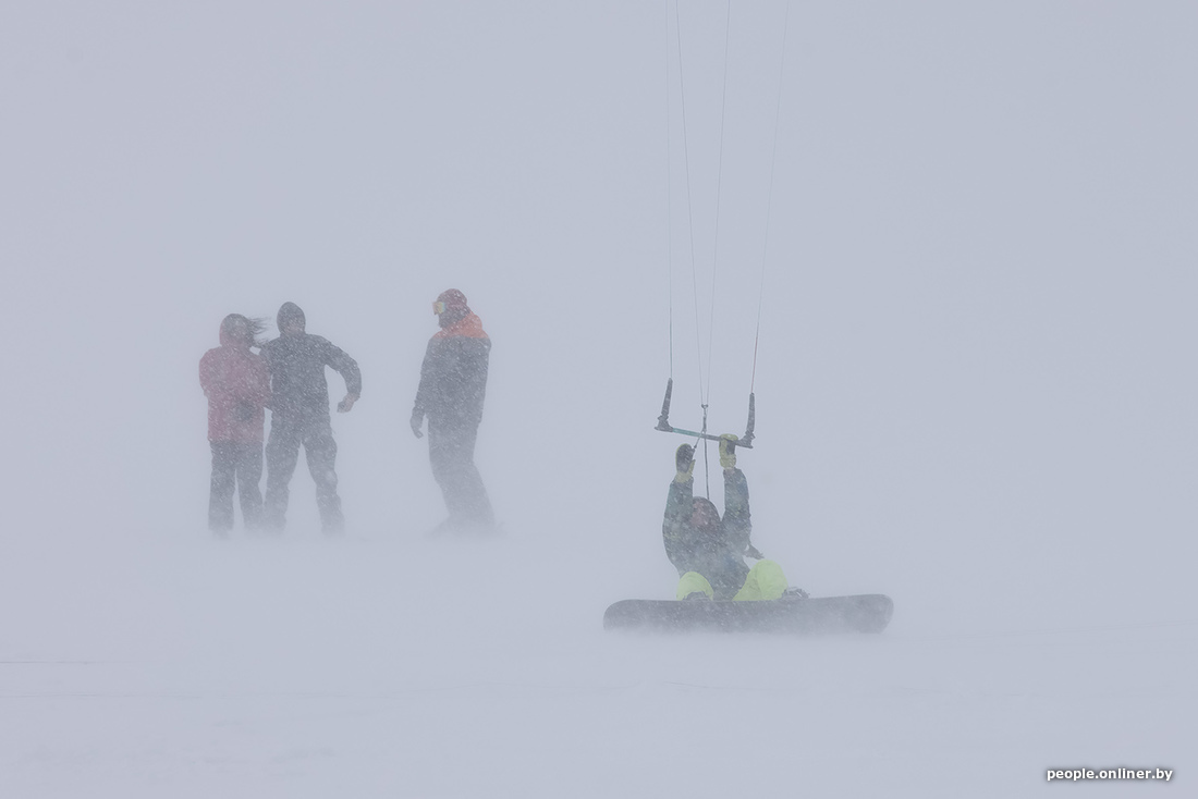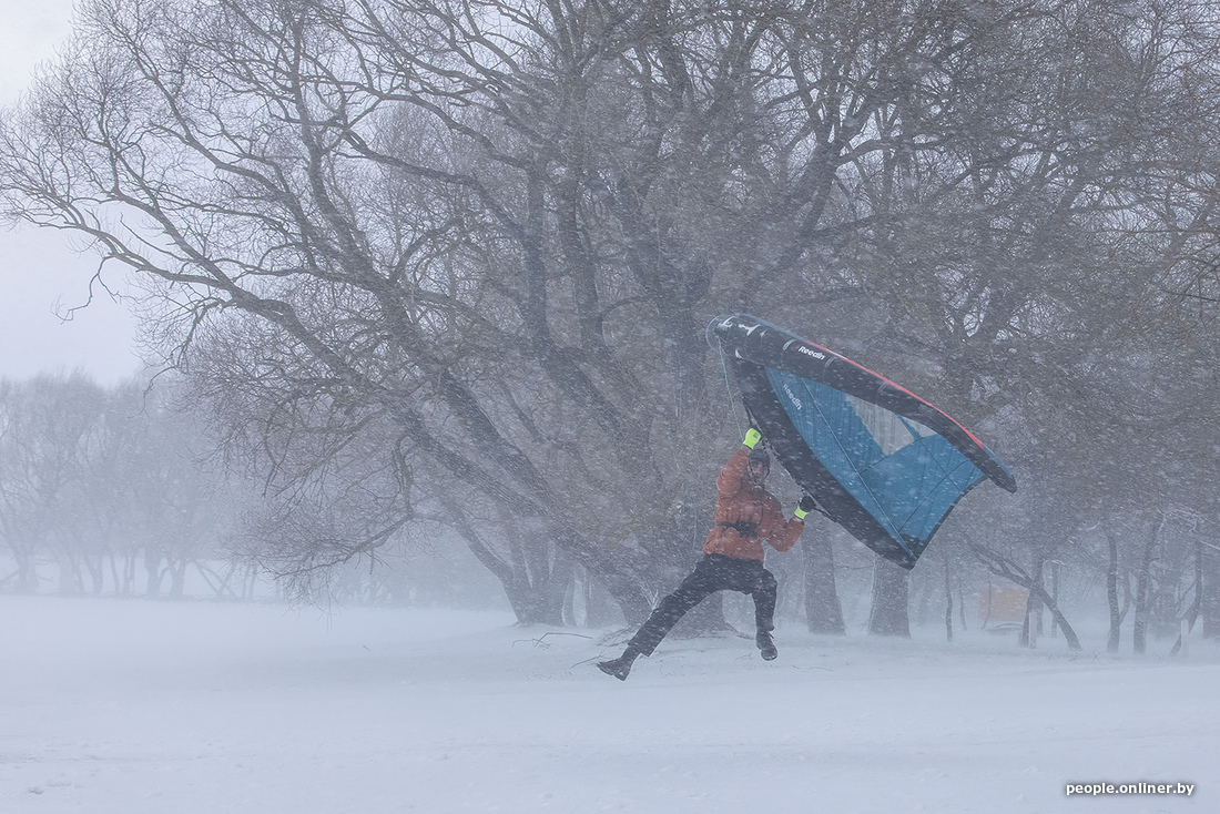 Пока вы мечтаете о сухом асфальте и зеленой траве под ногами, эти минчане, вооружившись лыжами и сноубордами, наслаждаются последними снежными днями. Наш фотограф Анна Иванова побывала в это воскресенье на Минском море и привезла оттуда снимки любителей зимнего кайтинга.