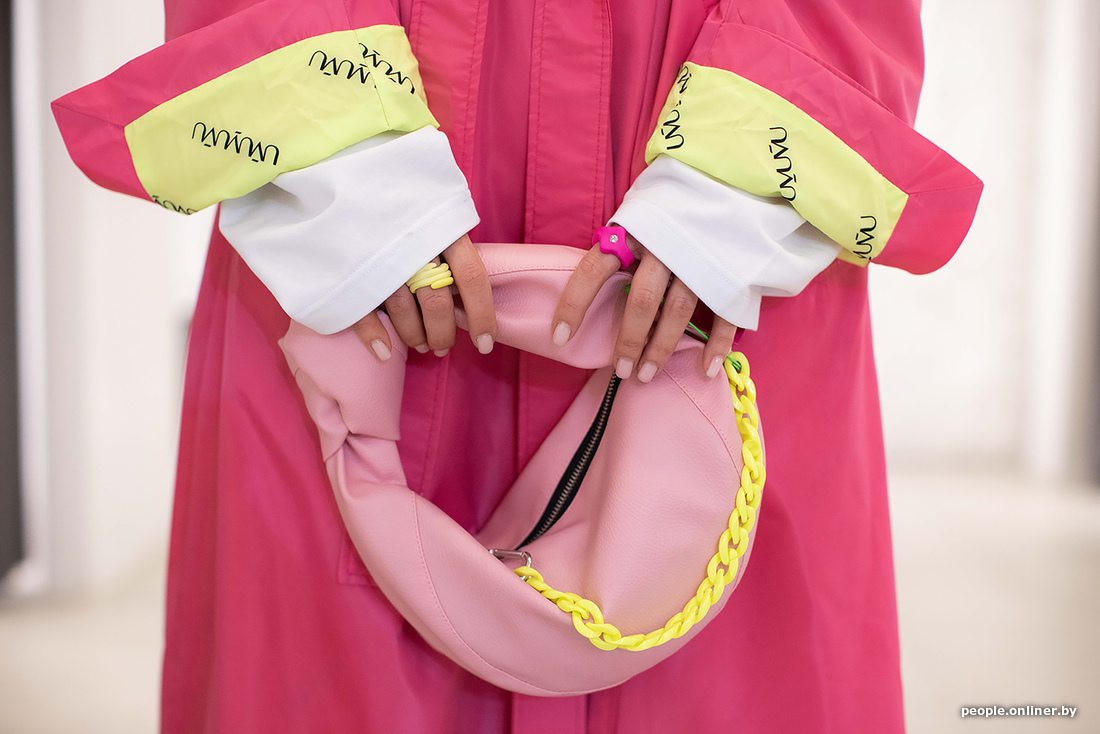 Кроме цвета, внимание приковывает и нестандартный крой: линия плеча суперширокая, а крой в целом гиперсайзный, поэтому образ получается расслабленным и несерьезным. Гулять так гулять — мы добавили в аутфит еще немного ярких цветов, чтобы утрировать общий посыл жизнерадостности.