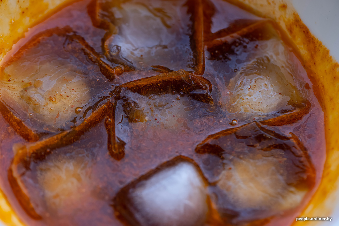 Не понимаю, на что я надеялся, но получилась забористая мерзость. Сама по себе ледяная лапша — это еще полбеды. Дьявол кроется в концентрированной жиже, проглотить даже каплю которой заставить себя банально невозможно. Возможно, мне не повезло с рандомно взятой приправой или все-таки стоило раскошелиться на кунжутное масло, но что-то подсказывает, что нет.