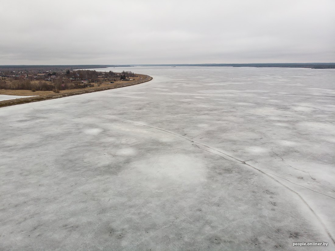 — Рыбаки еще дня три назад тут стояли, видел палатку возле кладбища. Но у нас из-за течения лед раньше сходит, так что никого нет, — объясняет мужчина. — Вам нужно ехать в сторону в Вилейки, в Рабунь. Там на льду точно кого-то увидите.