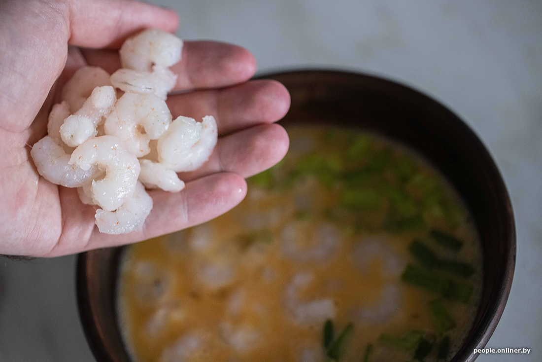 Теперь пошли креветки. У меня мелкие и уже вареные, из пачки.