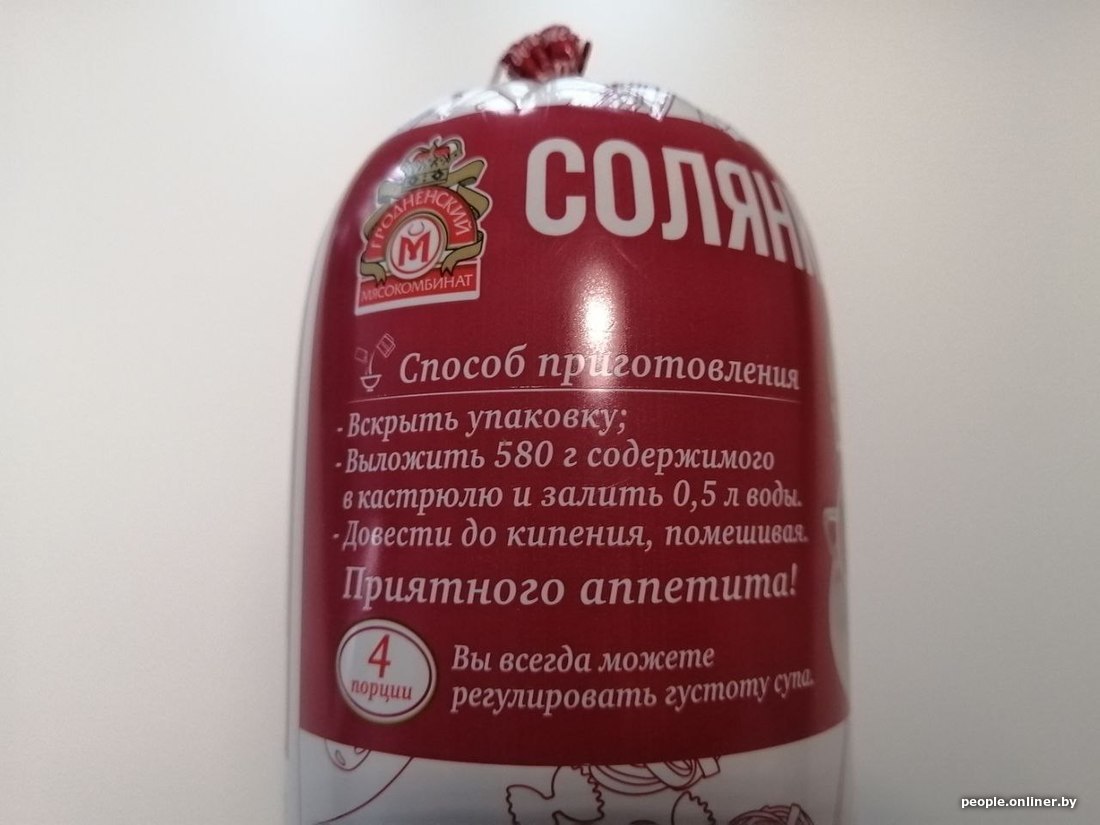 В основу для рассольника входит: вода, говядина, соединительная говяжья ткань (неужели нельзя без нее?), перловая крупа, соленые огурцы, сушеная морковка, сушеный лук, всякие ароматизаторы, стабилизаторы, загустители, соль, усилители вкуса и консерванты. Видимо, благодаря последним колбаса хранится 40 суток в холодильнике.