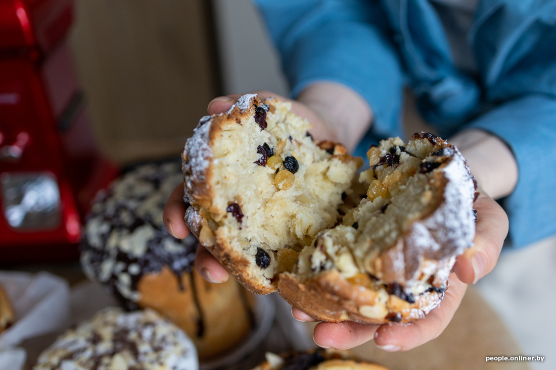 Посмотрите, какая красота скрывается внутри краффинов: изгибы, слои и много начинки. А вкус и аромат просто восхитительны. Если вы еще не пробовали такие куличи, то обязательно попробуйте испечь. Уверяю, вы влюбитесь в них.