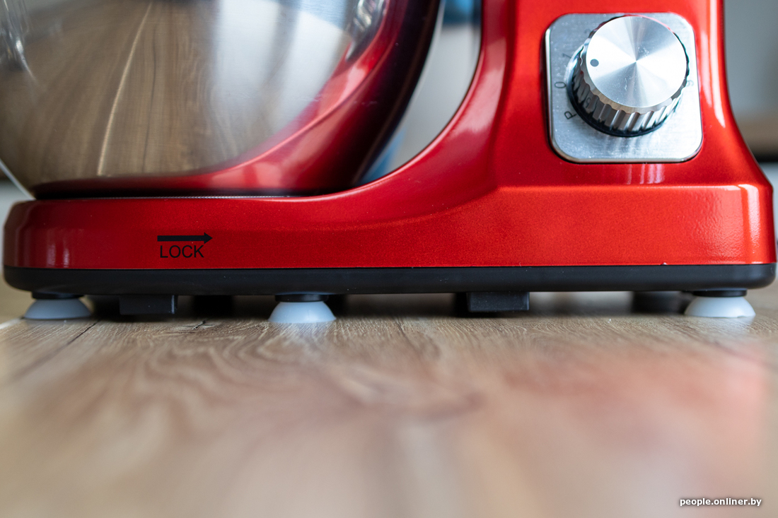 Планетарный миксер имеет 6 скоростей плюс импульсный режим. Мощность двигателя составляет 1400 Вт. До 4-й скорости он работает тихо, дальше громкость значительно увеличивается. Миксер оснащен присосками, которые надежно крепятся к столу и предотвращают его скольжение во время работы.