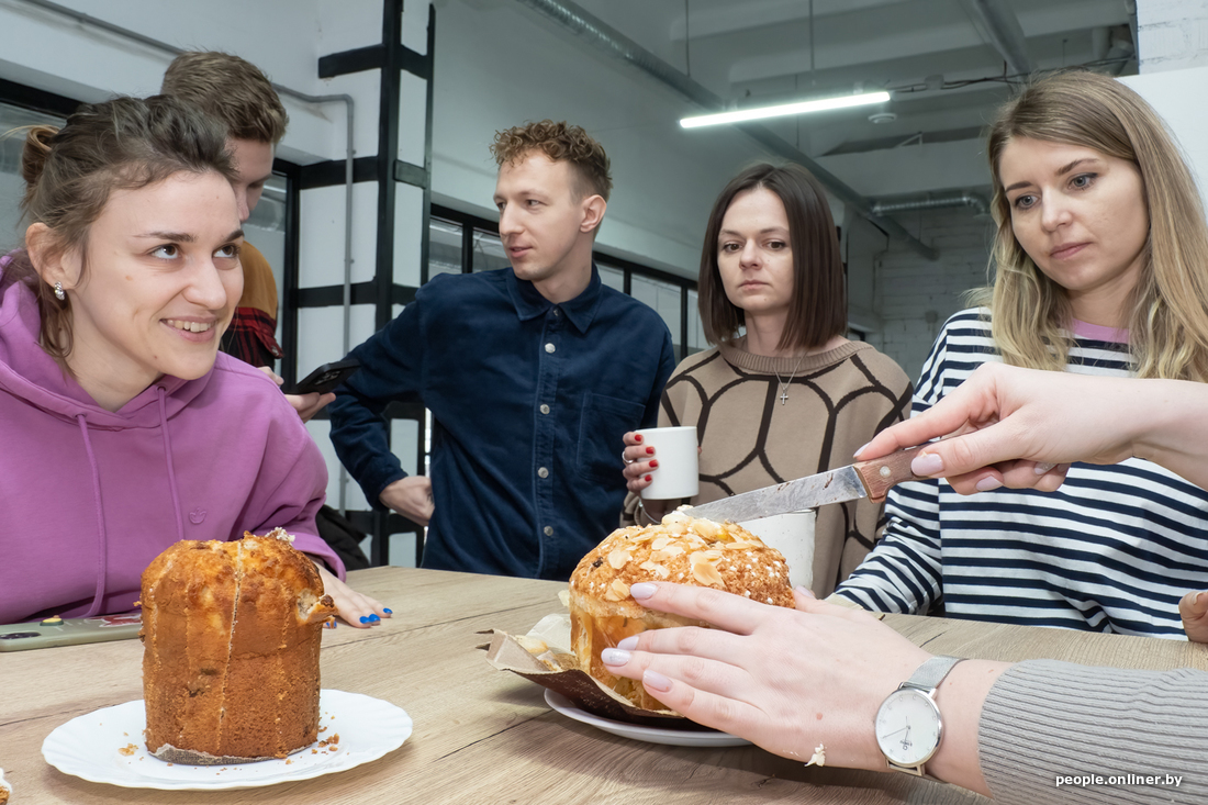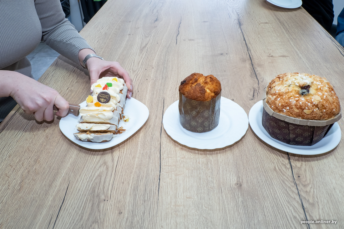 В первую очередь все тянутся за панеттоне. Пока ждем дегустацию, один из коллег успевает рассказать о том, что уже пробовал его раньше: «Это очень вкусно! Очень. Я буду заказывать именно панеттоне к празднику, но в другой кондитерской. А тут я тоже уже пробовал. Они весь год их выпекают, только другой формы — продолговатой. Я покупал к 8 Марта, когда шел в гости к родителям. И даже старшее поколение признало, что это вкусно. Просто для себя за такие деньги я бы вряд ли брал, но когда хочешь порадовать близких — это вполне нормальная цена».