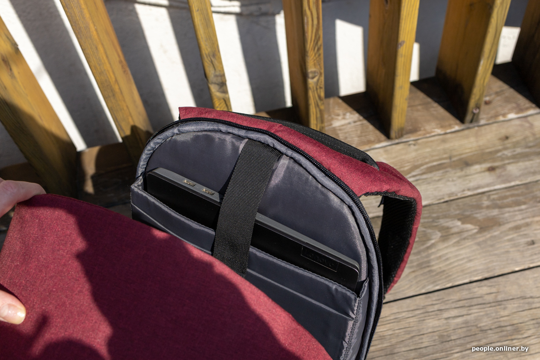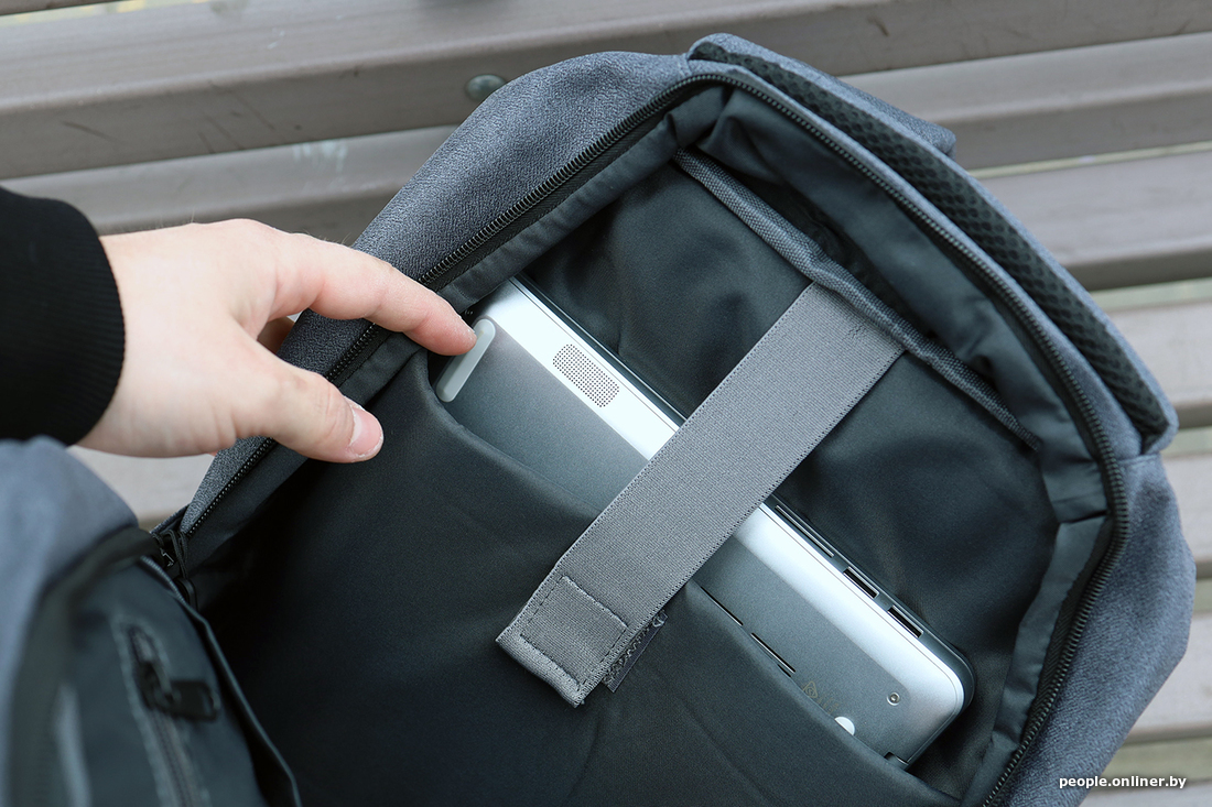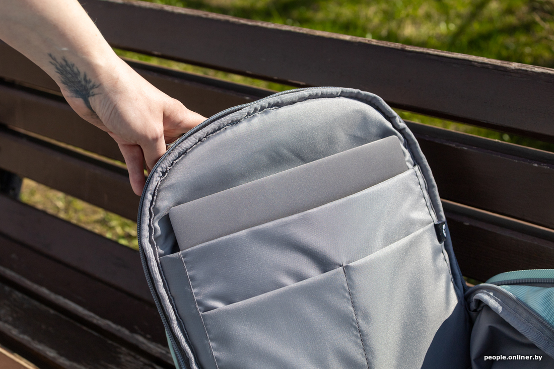 В основном отделении есть мягкий отсек для ноутбука диагональю до 15,6 дюйма. Также имеется карман для планшета и небольшой карман для мелочей. Для особо ценных вещей предусмотрено небольшое отделение в спинке рюкзака.