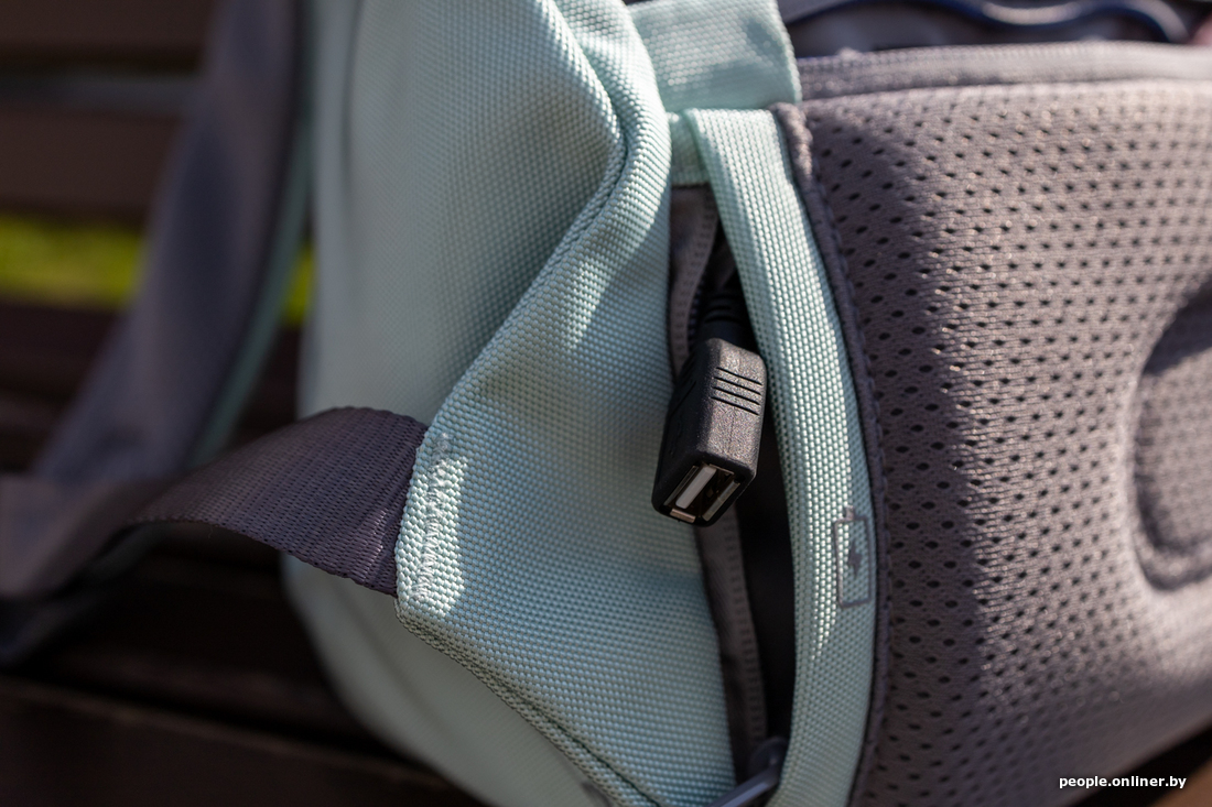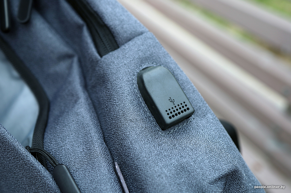 К тому же вещь удобна тем, что прямо на лямке расположен кармашек для карточек или проездных. Также есть съемный карабин для ключей. И даже USB-порт для зарядки гаджетов.