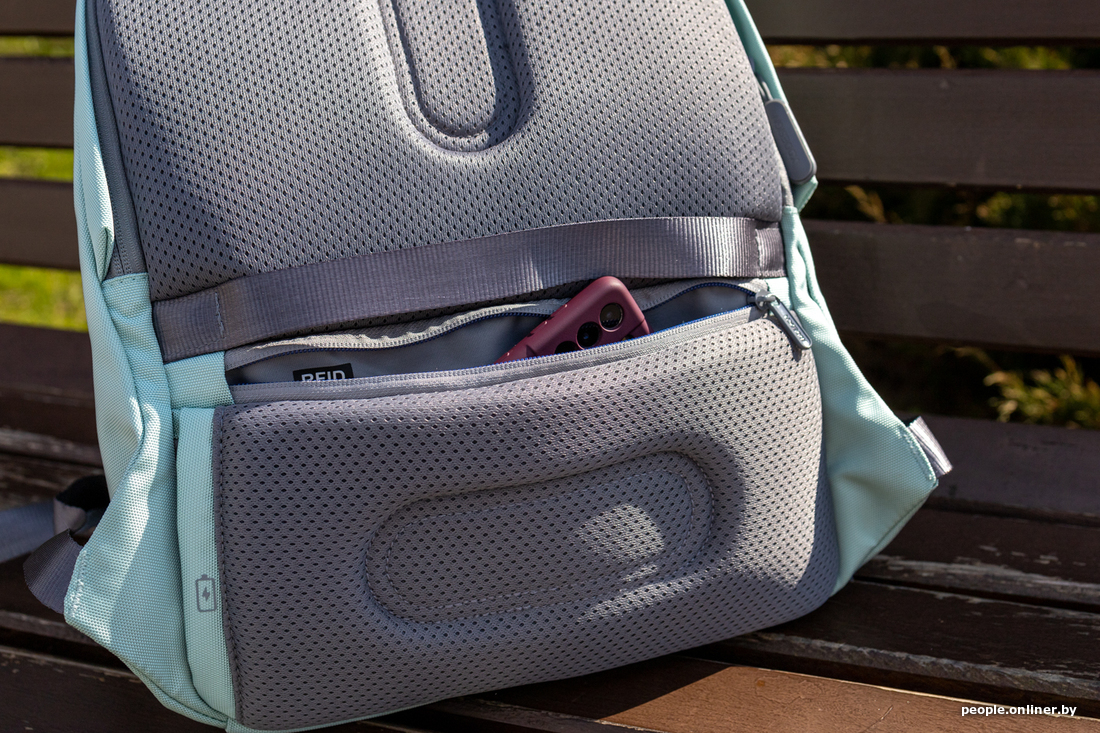 Особая конструкция этого рюкзака позволяет изменять его размер и из обычного делать супервместительный. Объем изменяется с 13 литров до 16. Рюкзак противокражный. Как это реализовано? Молнии основного отделения надежно скрыты, и бегунки хитро фиксируются. Кстати, Bobby Soft защищает своего пользователя не только от физических краж, но и от электронных взломов. На спинке рюкзака есть карман с RFID-защитой, которая не позволяет злоумышленникам считать данные с ваших карт и документов, оснащенных чипами.