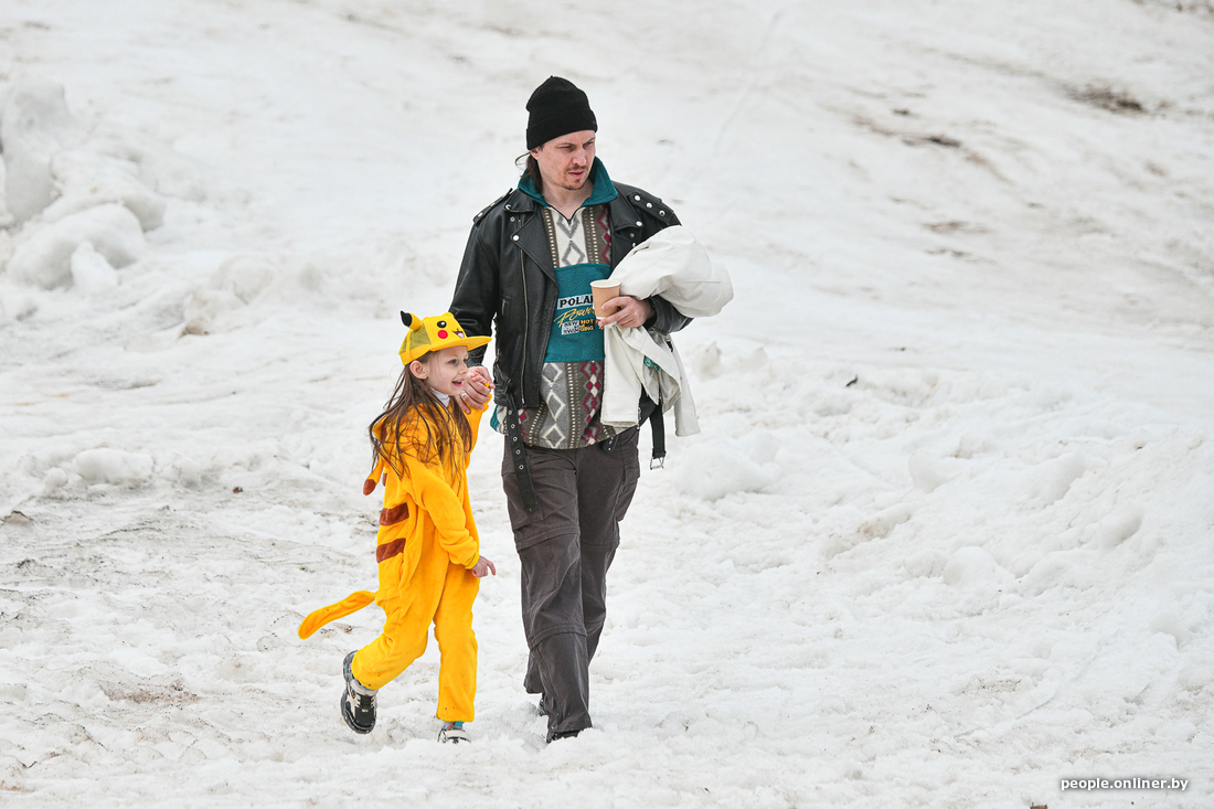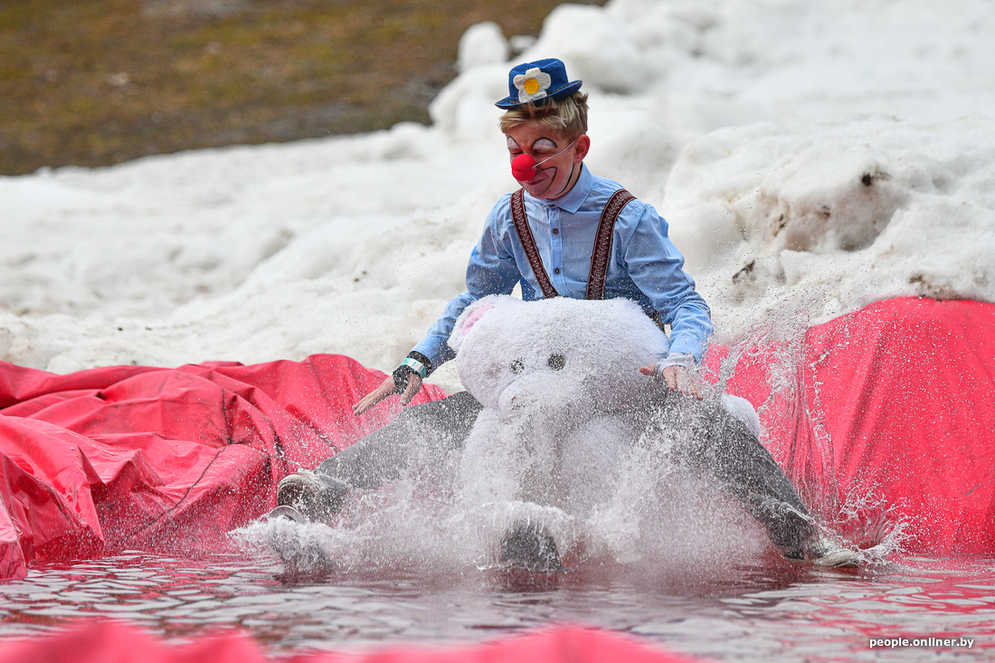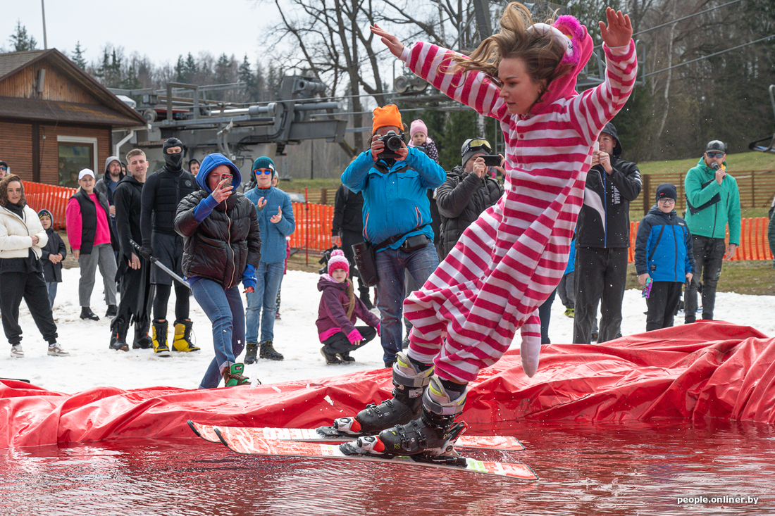 Вы посмóтрите на эти фото и точно спросите, что происходит. В горнолыжном комплексе под Логойском пытались попрощаться с зимой, чтобы следующий снег увидеть только в конце года. Показываем, как это было.