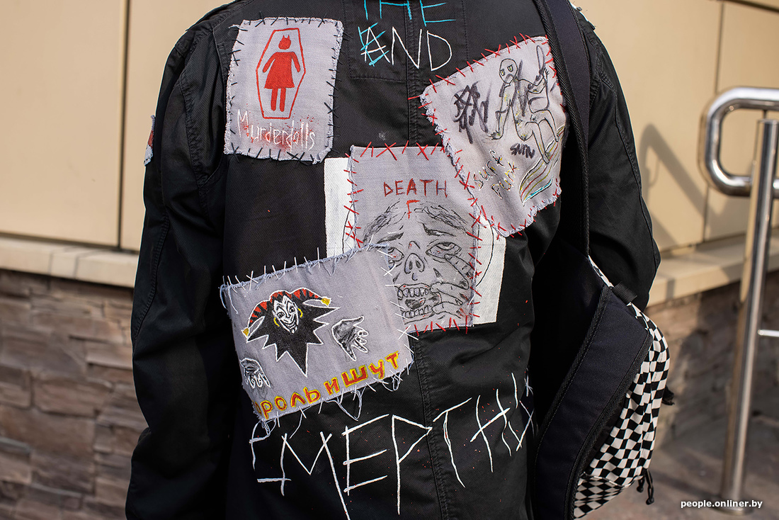 — Одежда для меня — это способ самовыражения. Как одеваюсь? Полупанк, полурок, полу что-то такое, — говорит молодой человек. — Вещи в подобном стиле начал носить примерно год назад, когда более жестко стал заниматься музыкой. А до этого одевался обычно — как все. Все, что на мне сегодня, полностью из секонд-хенда. Байку обменял, куртку — от бренда Next — уже сам дорабатывал, пришивая нашивки с названиями любимых групп. У меня тут и Rammstein, и «План Ломоносова», и «Порнофильмы»... Рисунки, кстати, тоже сам наносил.