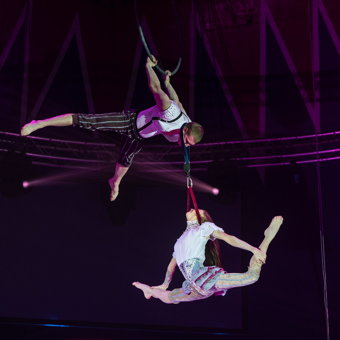 — Ладно бы если только в руках: у нас есть элемент, где она цепляется ногой за мою ступню и висит вниз головой на высоте 20 метров над голым манежем. Я иногда думаю: а что, если судорога? Потом одергиваю себя: не-не, все равно держать буду изо всех сил, даже если ногу оторвет.