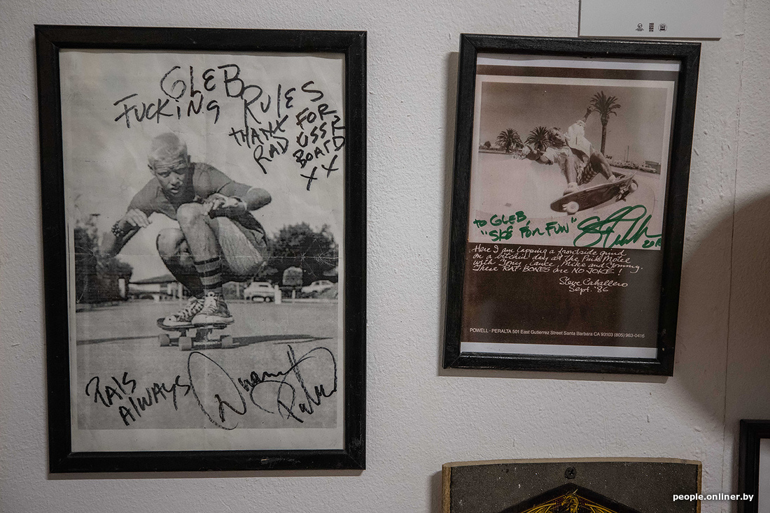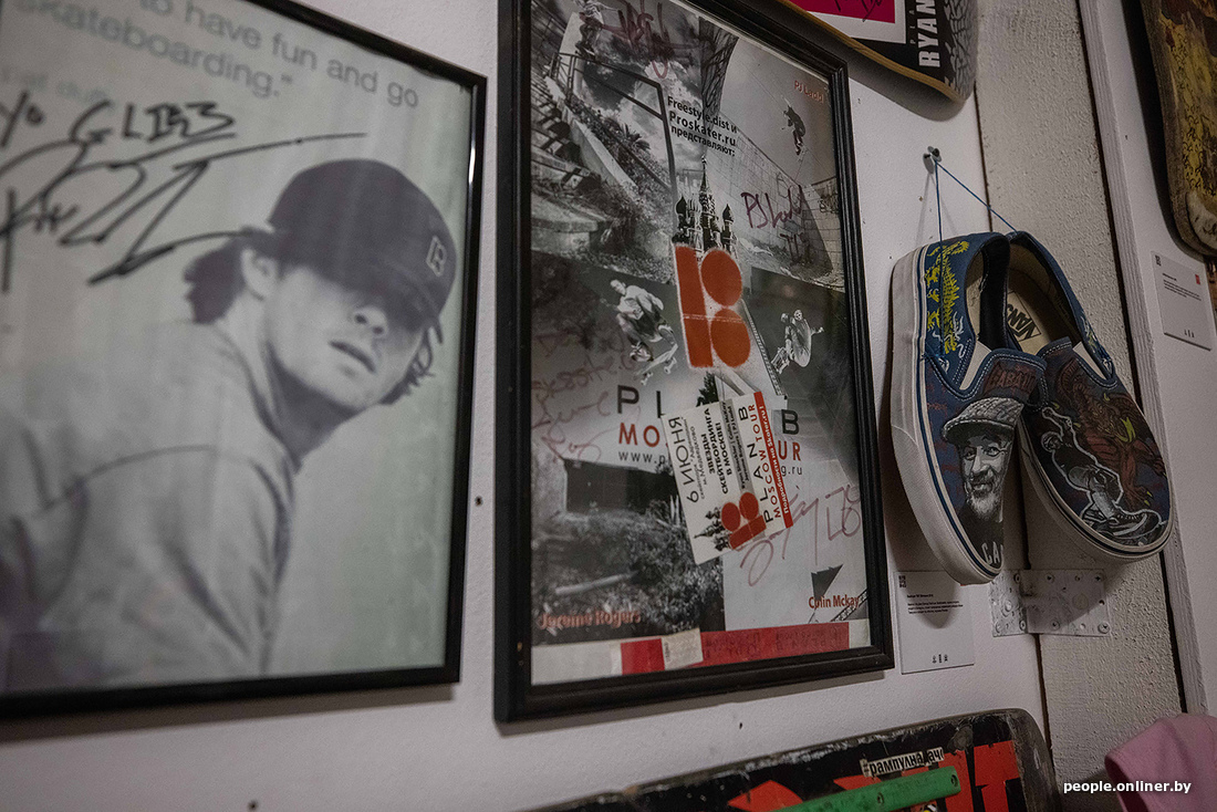 Владеет этим местом Глеб Бенциовский — культовый персонаж в истории белорусского скейтбординга. Знаете, если у человека на стене висит постер Тони Хоука с именной подписью To Gleb for Minsk8Museum, то вряд ли ему нужно что-то доказывать. Самый известный скейтер планеты знает о минском музее и его хозяине. А вы — еще нет, и это надо исправлять.