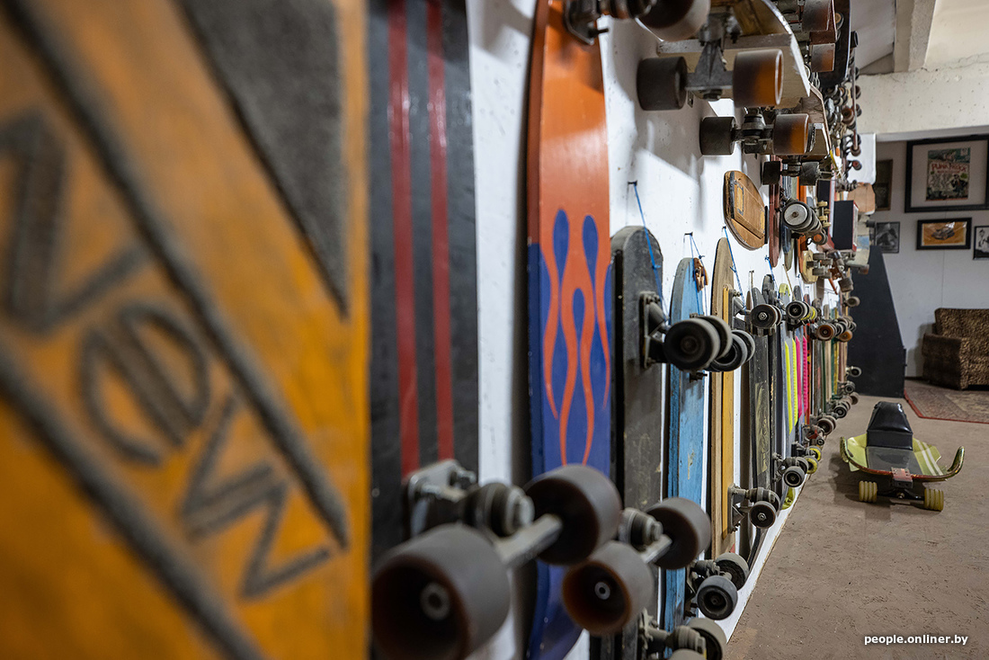 Так вот, «между прочим» Глеб сообщил, что скоро впишет белорусский скейтбординг в историю. Хотя, по сути, он уже это сделал: в мире не так много мест, где представлена настолько разноплановая подборка скейтбордов со всех уголков мира. Пару лет назад коллекция Глеба окончательно потеряла географическую привязку — теперь тут не только легендарные советские скейты, а, кажется, вообще все, что только можно представить.