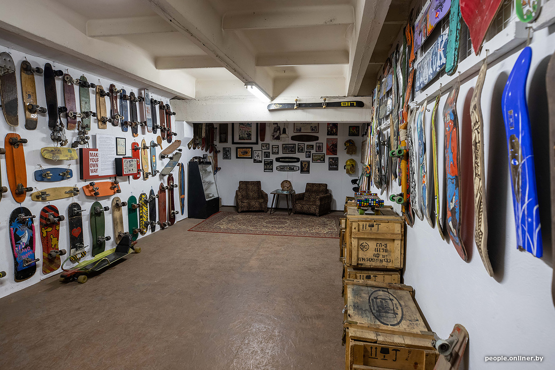 Даже если скейтбординг не кажется вам чем-то важным, перед этим местом ощущаешь некий трепет. В разных корнерах музея собраны поистине культовые экспонаты американского, бразильского, европейского, советского и белорусского скейтбординга. Да, в Беларуси периода позднего Союза тоже делали скейты. Правда, чаще всего их собирали на оборонных заводах, и аэродинамику они имели соответствующую, как у танков. Но все это тоже часть прекрасной истории.