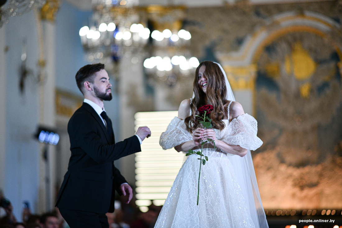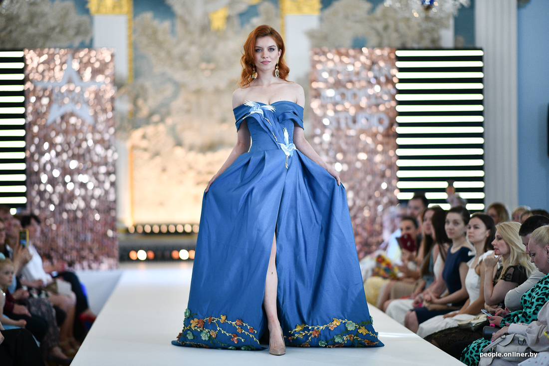 Как и подобает балу, на моделях были роскошные вечерние наряды (дизайнеры — Татьяна Трофименкова, Татьяна Давыденко, салон «Счастье»), дополненные украшениями от Дины Афанасьевой и Екатерины Новиковой. Отдельно девушки продефилировали в свадебных платьях.