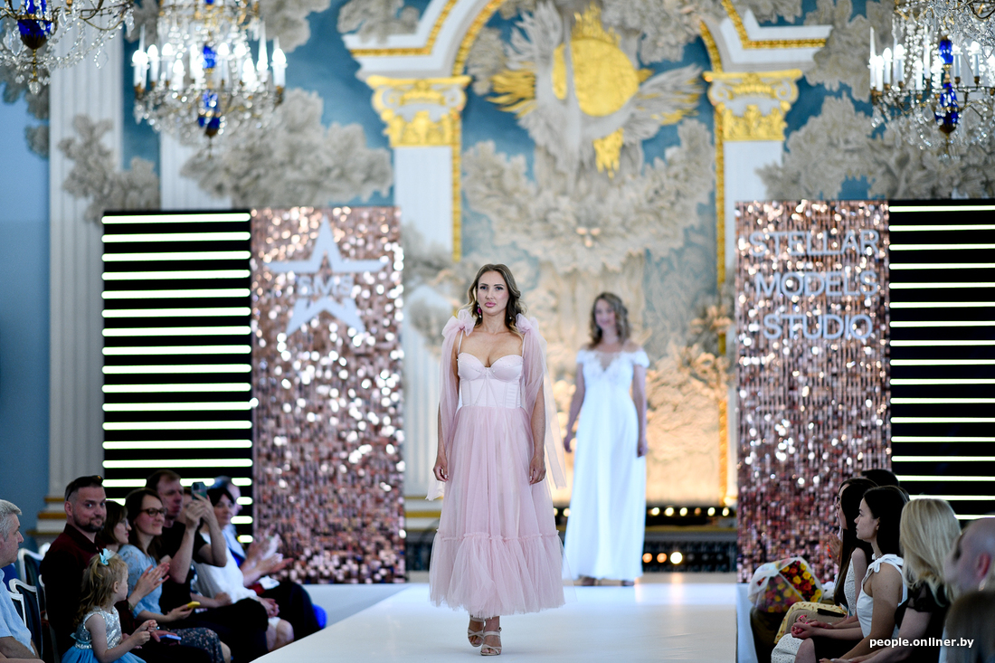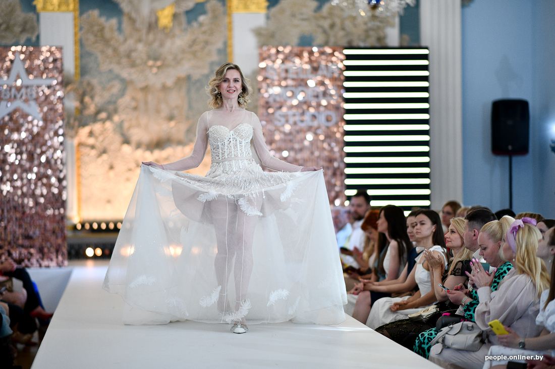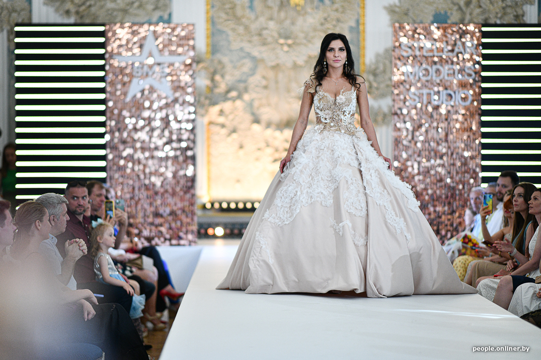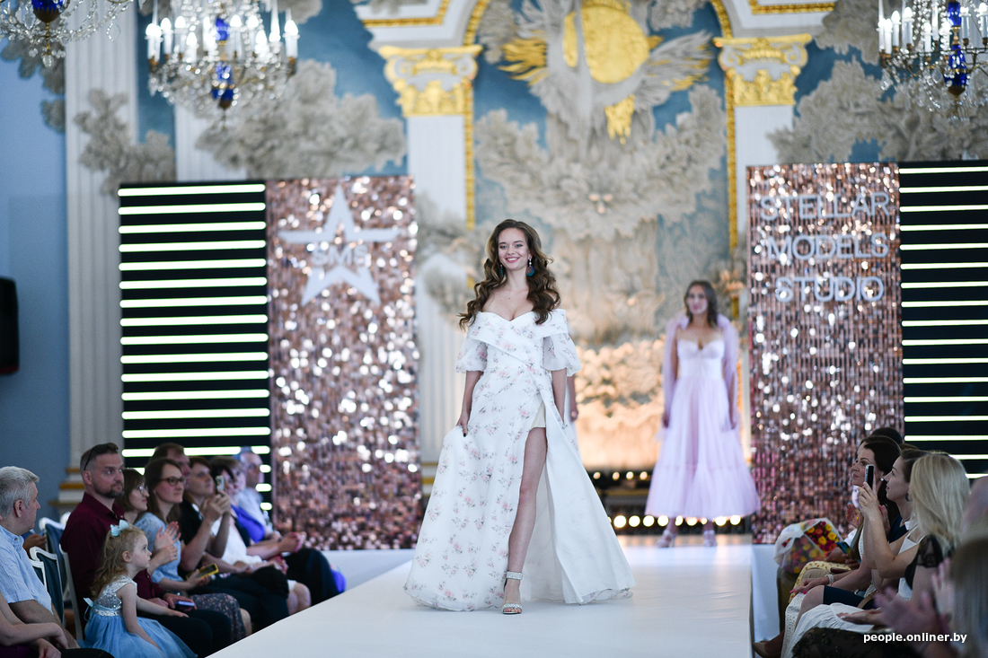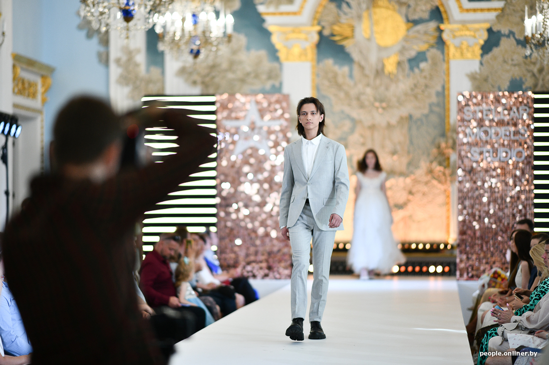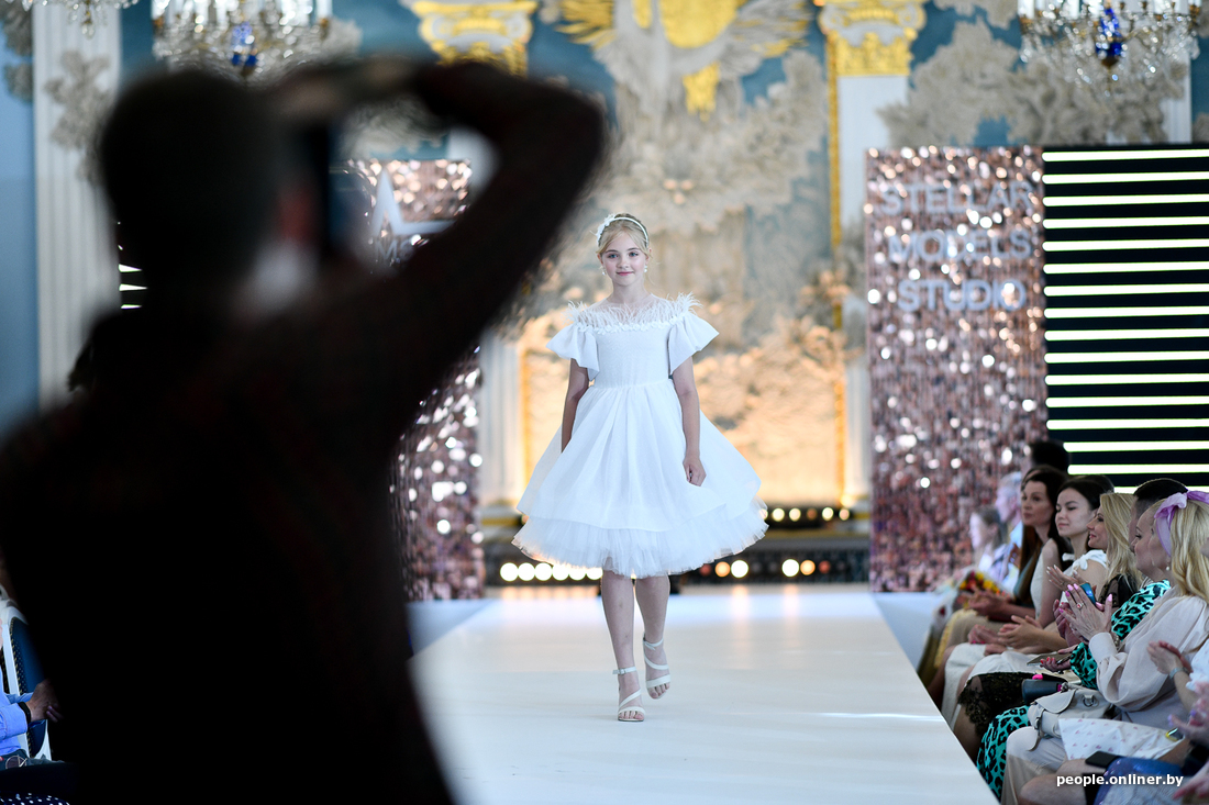Всего на белоснежный подиум вышло 54 модели в возрасте от 7 до 60 лет — парни и девушки, которые проходили обучение в Stellar Models Studio. Правда, это не единственное условие участия в показе: нужно было заплатить взнос от 170 до 200 рублей.