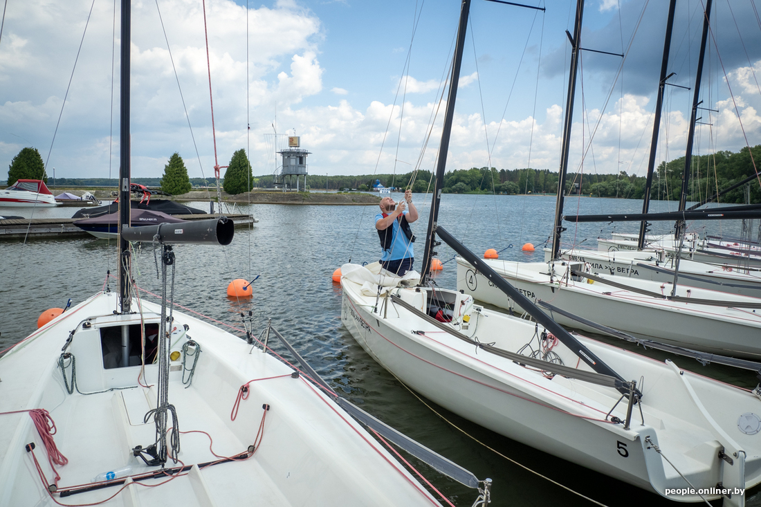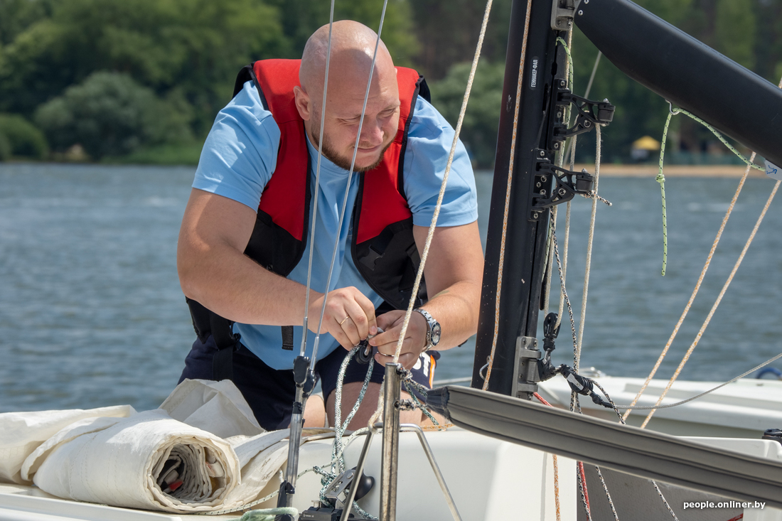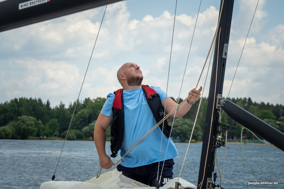Приятнее места для рабочей встречи, чем летом на Минском море, сложно придумать. А если тебя еще и обещали покатать на яхте… Поэтому к герою нашего материала отправляемся с большим нетерпением. Тем более что в истории есть нестандартный поворот: с Евгением мы знакомы уже год. Тогда он выиграл обучение управлению спортивной яхтой в нашем совместном конкурсе с яхт-клубом «Сила ветра» и Центром парусного спорта. Интересно посмотреть, чему он смог научиться с нуля.